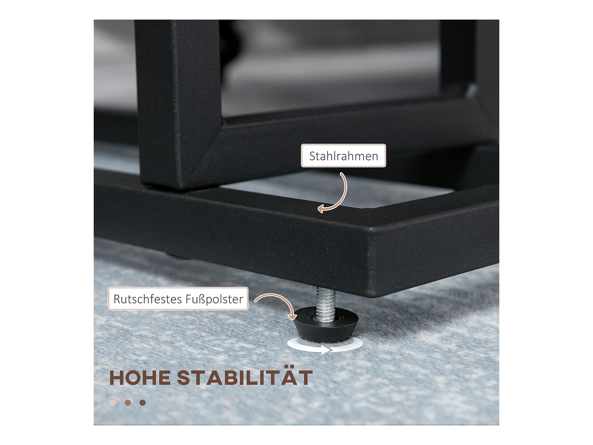 Bijzettafel met opbergvak, stalen frame en houten blad, donkerbruin en zwart (49x19x55cm)