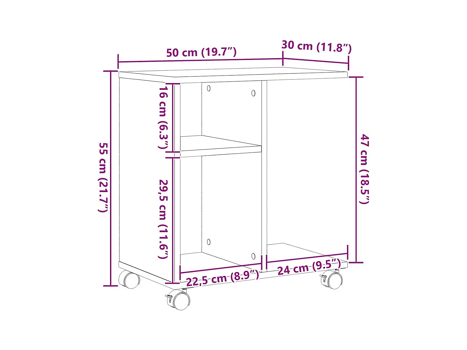 Bijzettafel met plank, handgemaakt eikenhout, 50 x 30 x 55 cm