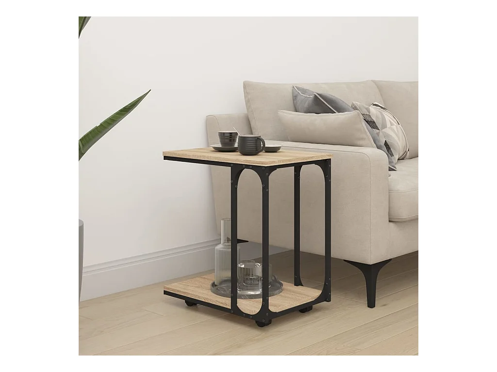 Bijzettafel met wielen Sonoma eiken 50x35x55,5 cm