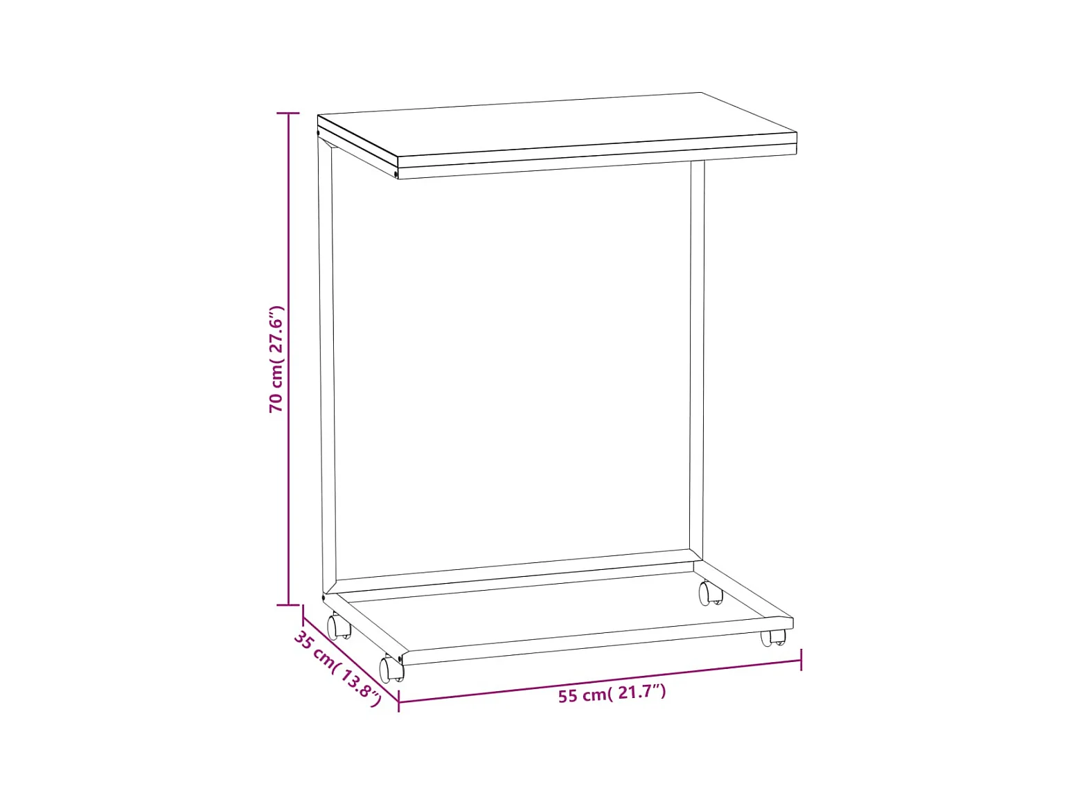 Bijzettafel met wieltjes 55x35x70 cm bewerkt hout zwart