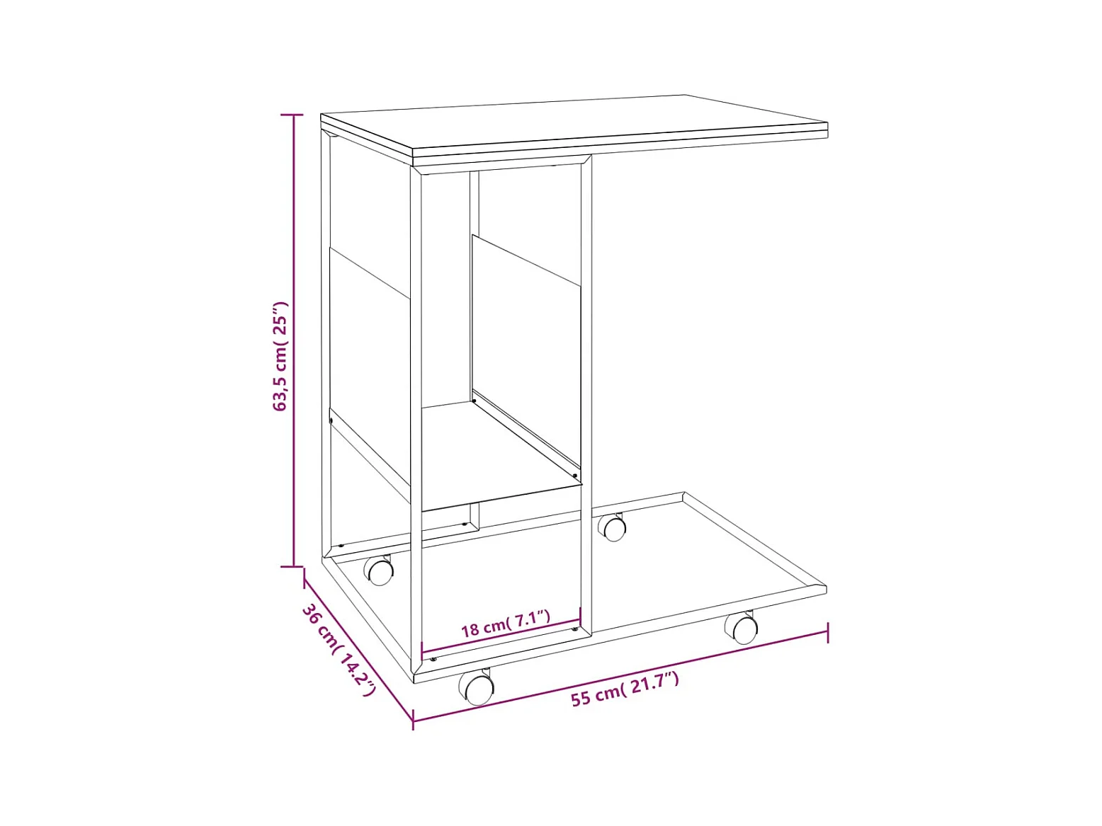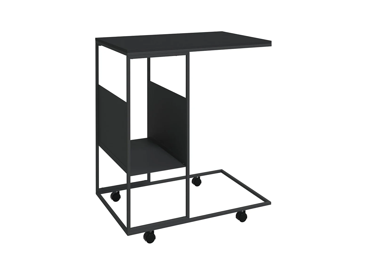 Bijzettafel met wieltjes 55x36x63,5 cm bewerkt hout zwart