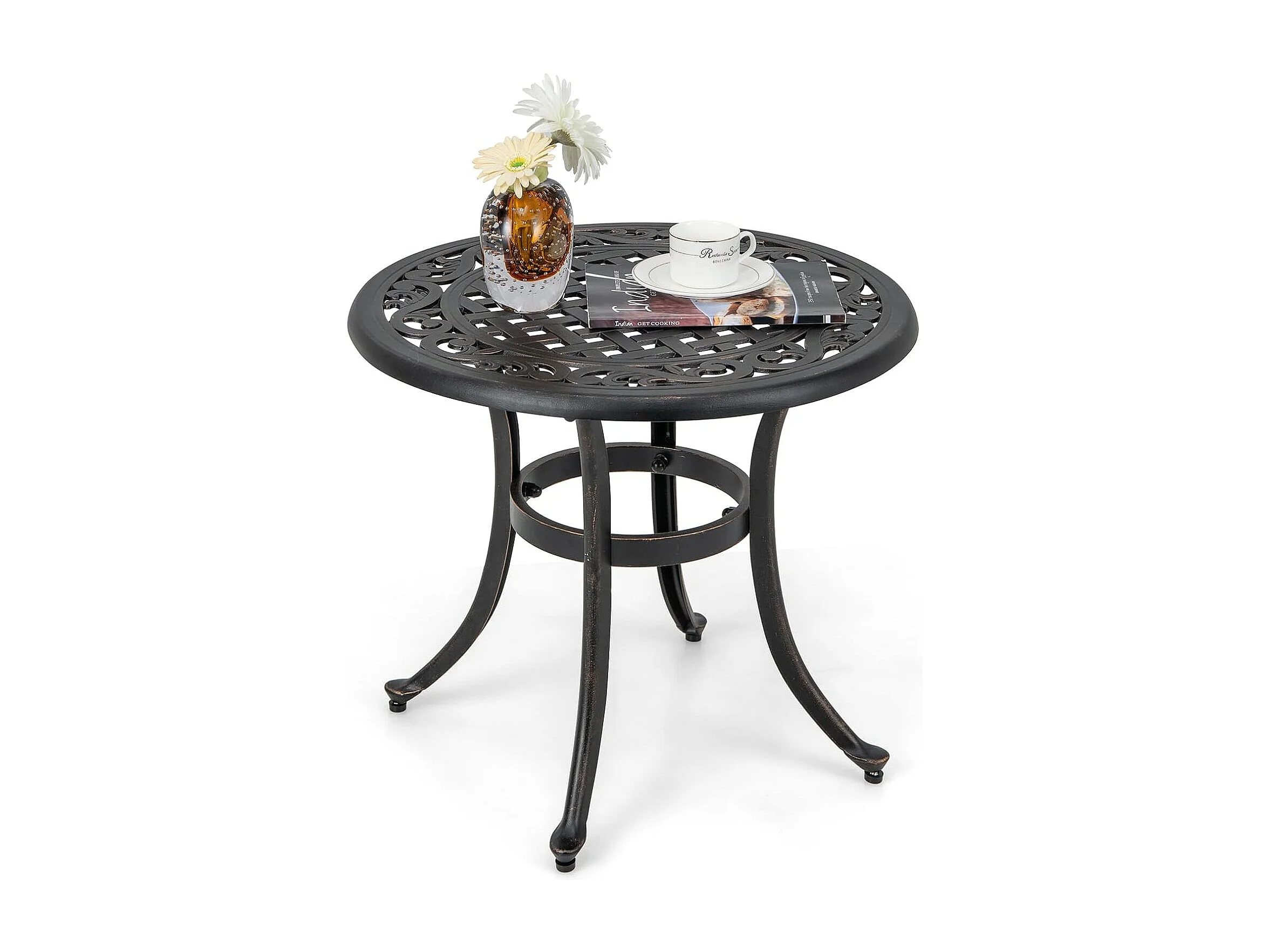 Bijzettafel van gegoten aluminium, weerbestendige balkontafel met verstelbare voetkussens, ronde tuintafel voor tuin, achtertuin, balkon, 60 x 60 x 53 cm ZB33544