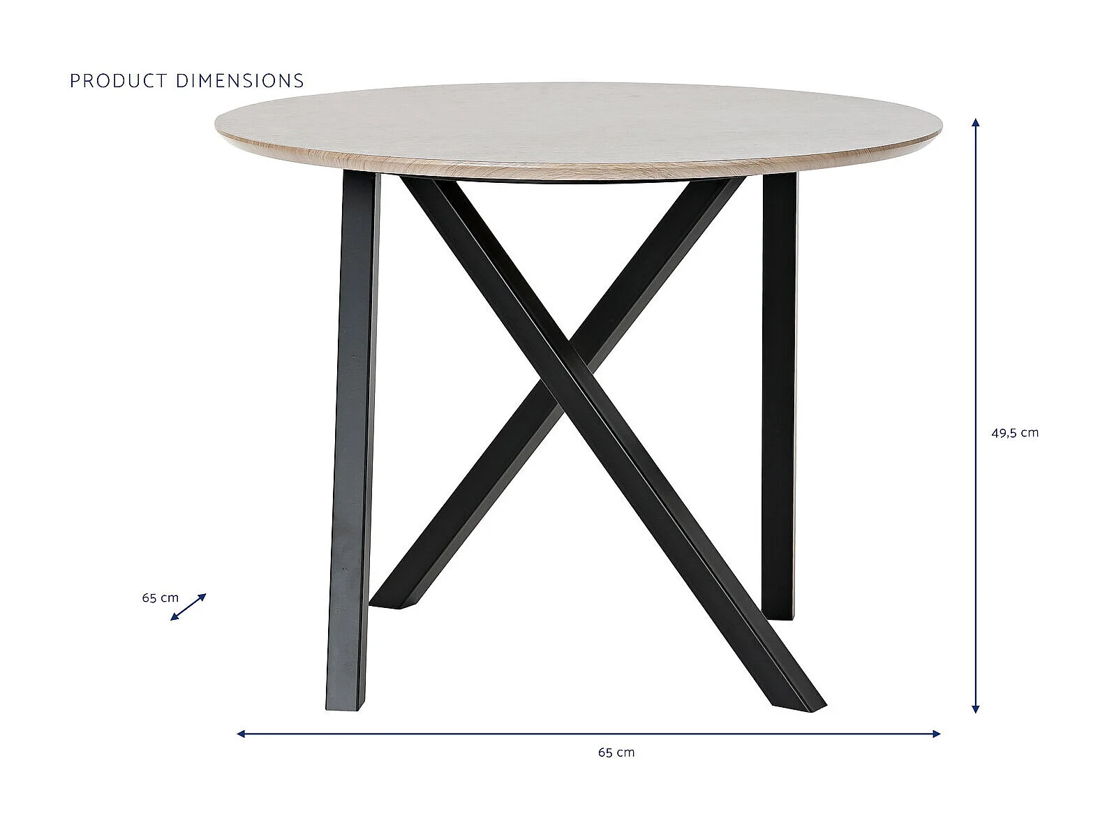 Bijzettafel van metaal en hout, 65x65x49,5 cm.