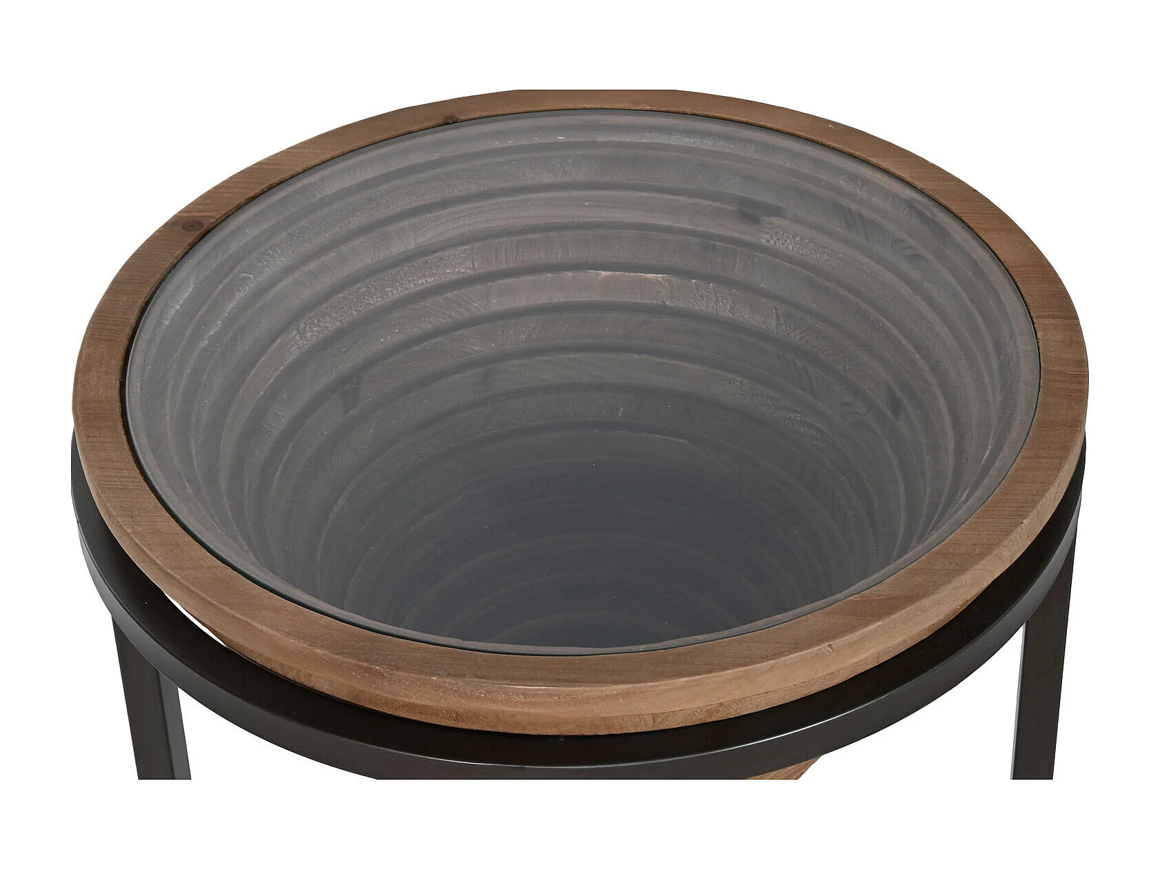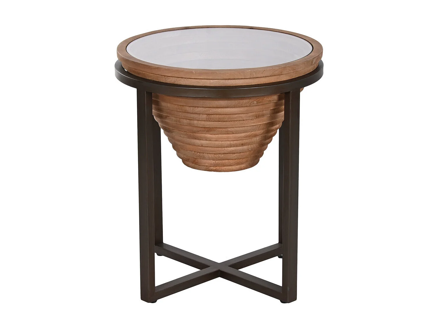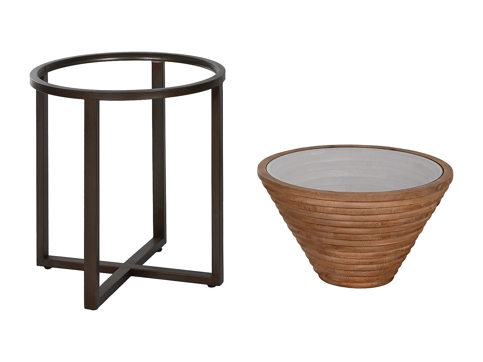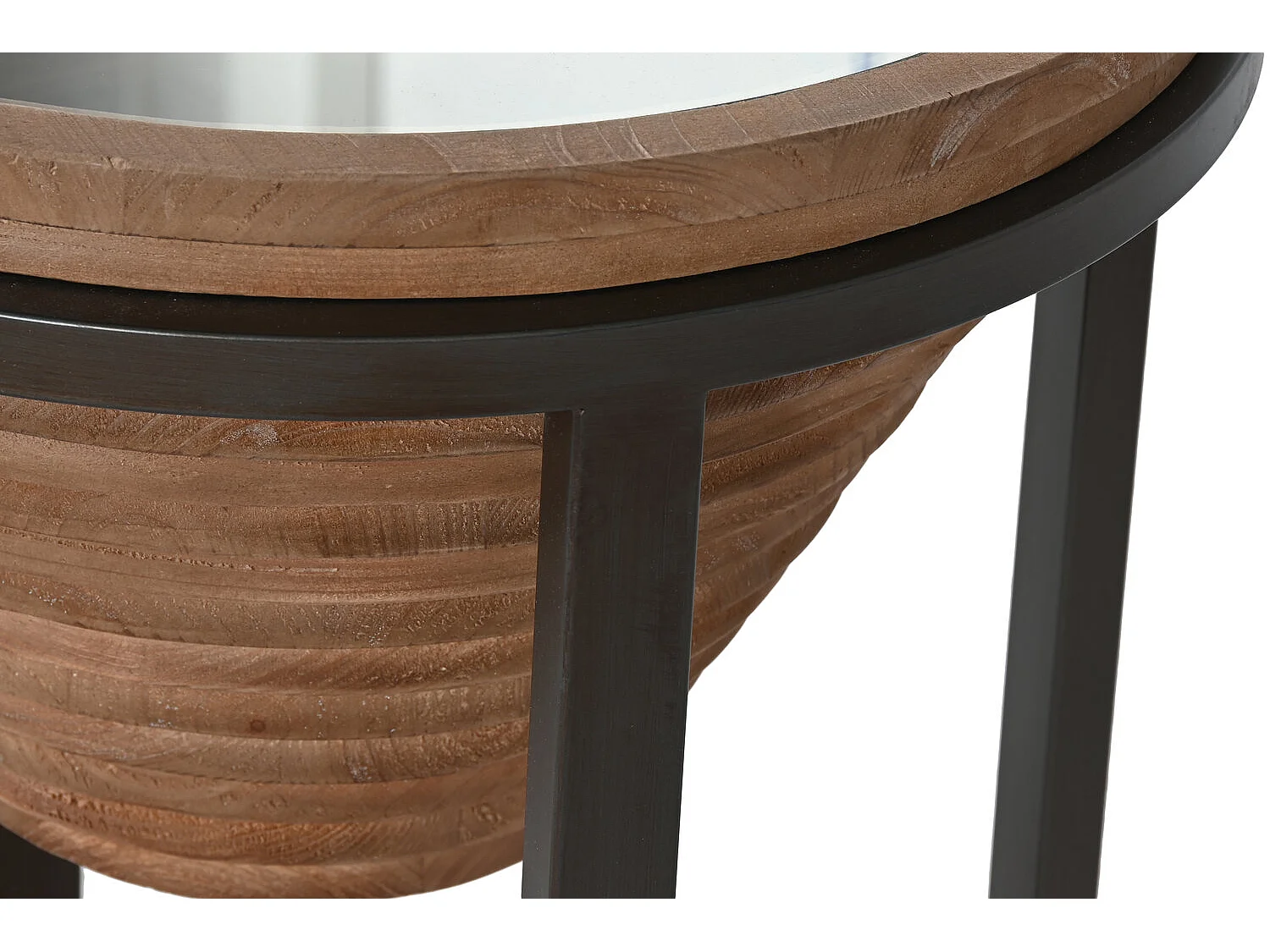 Bijzettafel van sparrenhout met glazen blad 46x46x55,5 naturel