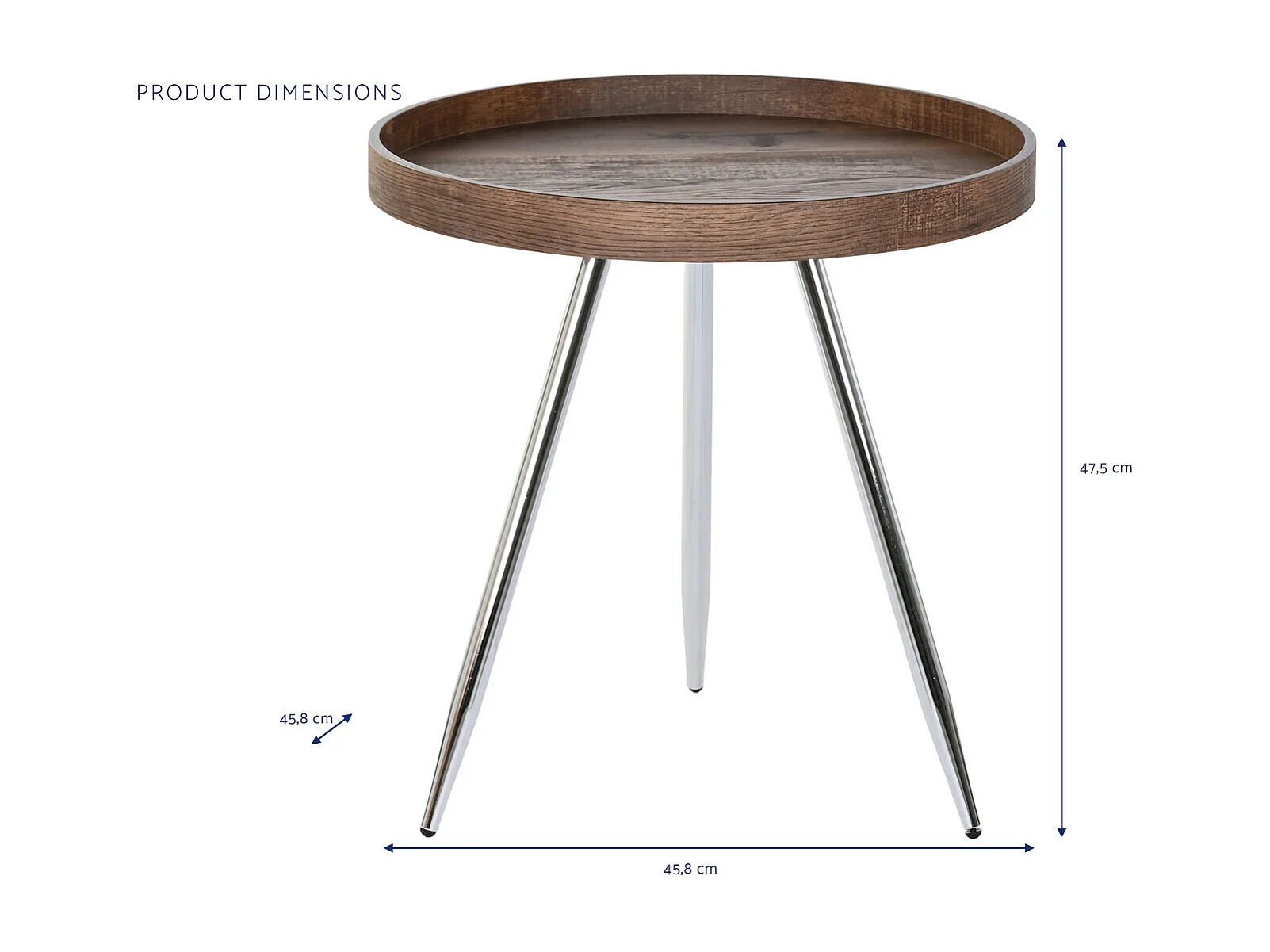 Bijzettafel van staal en MDF, 45,8 x 45,8 x 47,5 cm.