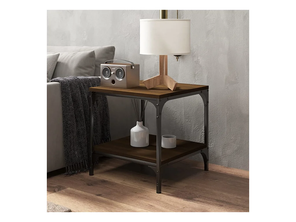 Bijzettafel 40x40x35 cm bewerkt hout bruin eikenkleur
