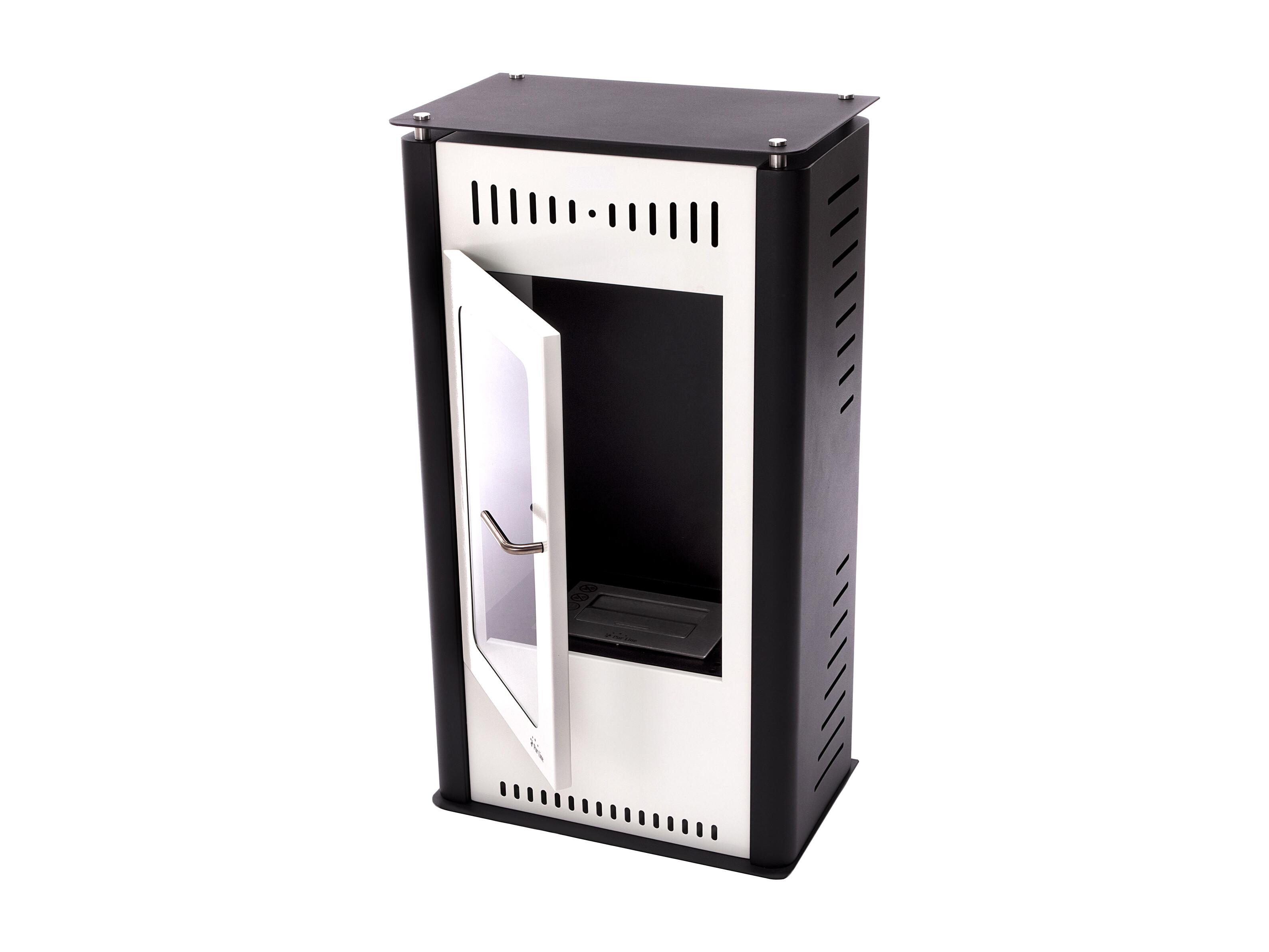 Staande ethanolhaard, rechthoekig ontwerp in wit staal