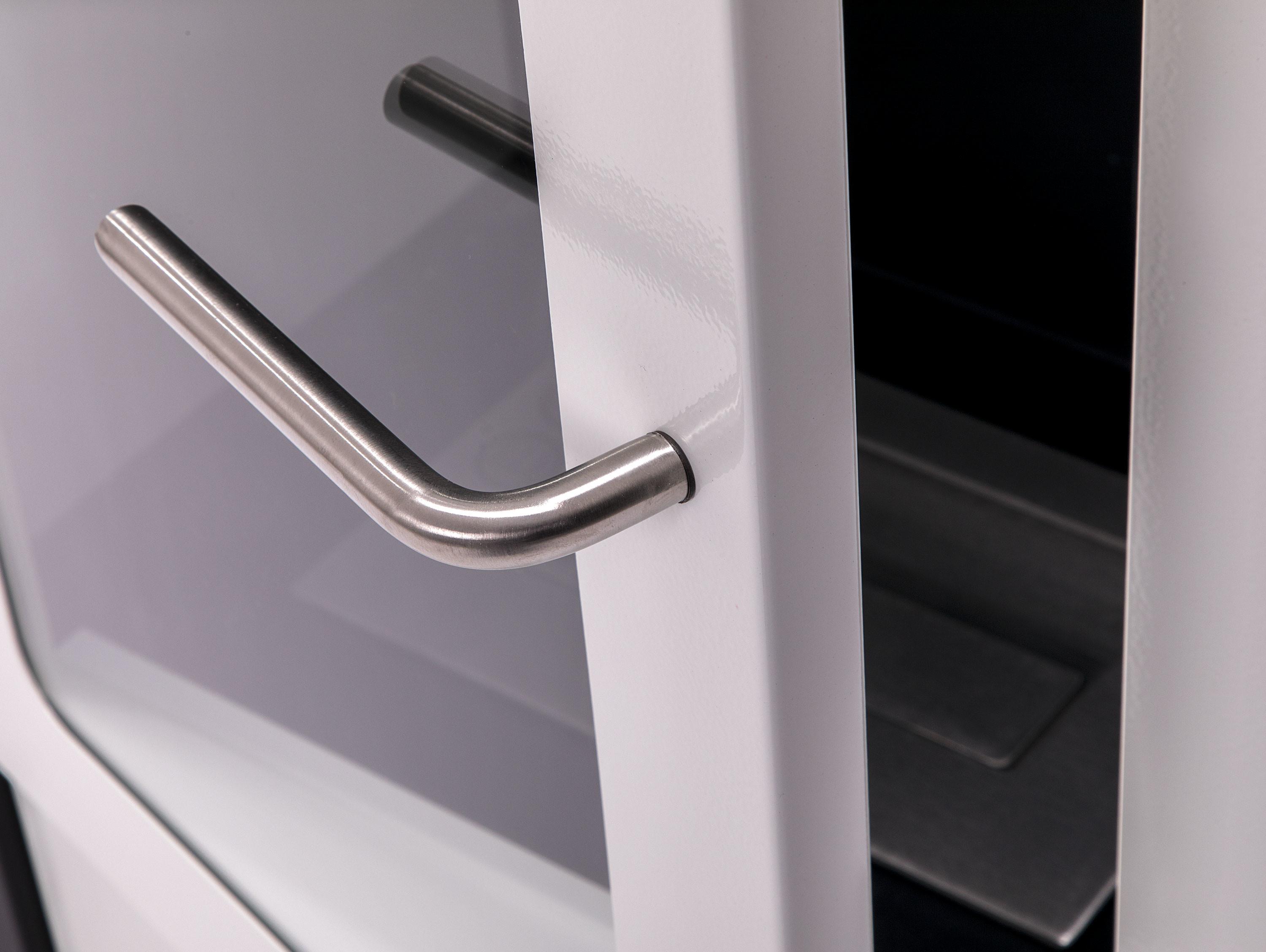 Bio ethanol buitenfornuis, rechthoekig ontwerp in wit staal met gehard glazen deur