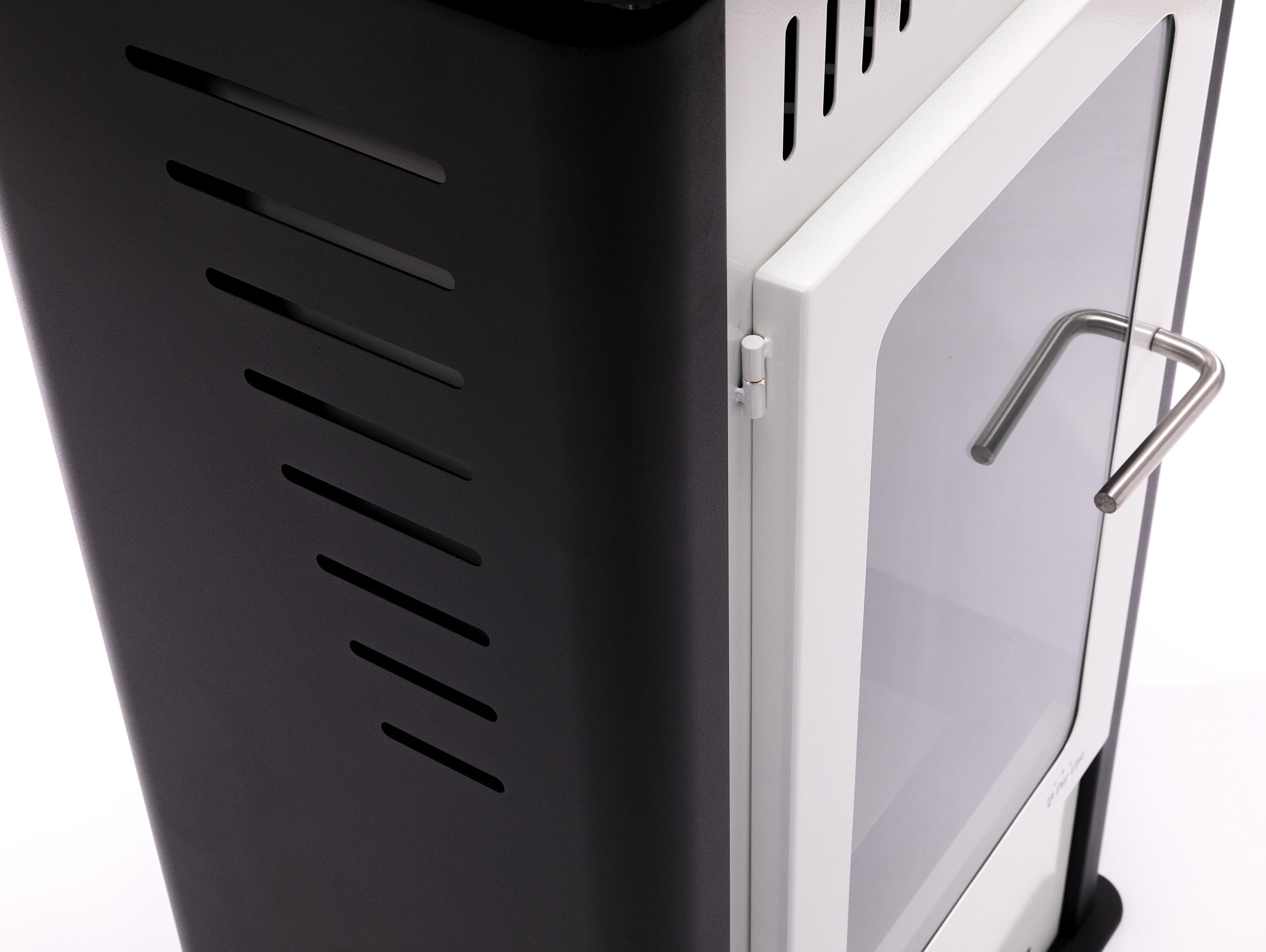 Bio ethanol buitenfornuis, vierkant ontwerp in wit staal, met poten en gehard glazen deur