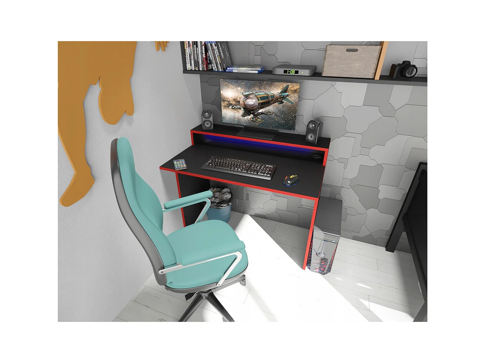 Biurtafel Gaming Computer Voor Gamer Zwart LED