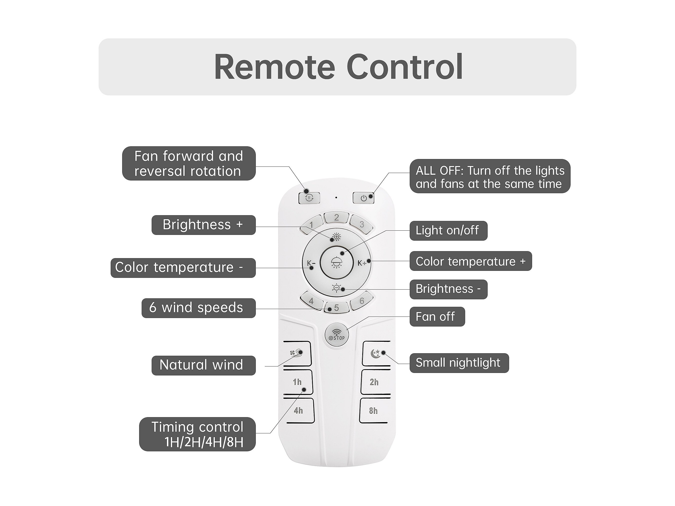 Plafondventilator met licht, afstandsbediening, 6 snelheden, omkeerbare DC-motor, ABS, wit (106,6x106,6x47,5 cm)
