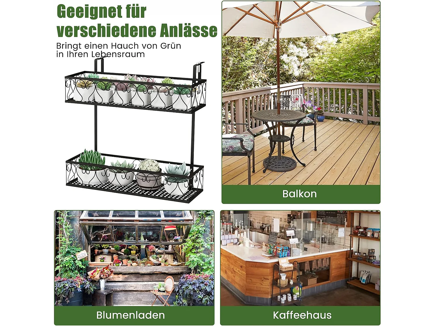 Bloemenrek om op te hangen, metalen bloempothouder, hangrek met verstelbare haken, potplantenhouder voor tuin, balkon, terras, reling, plantenrek, zwart