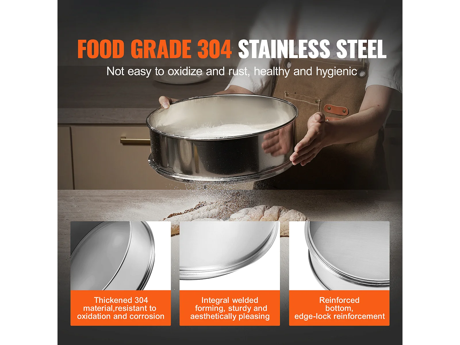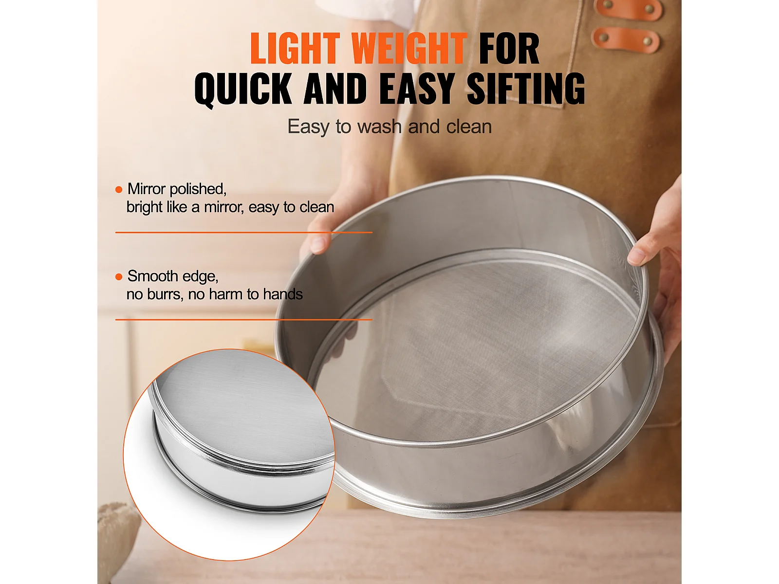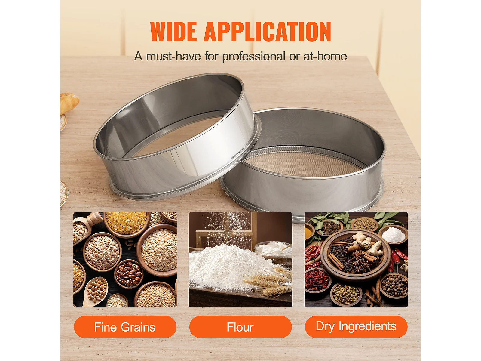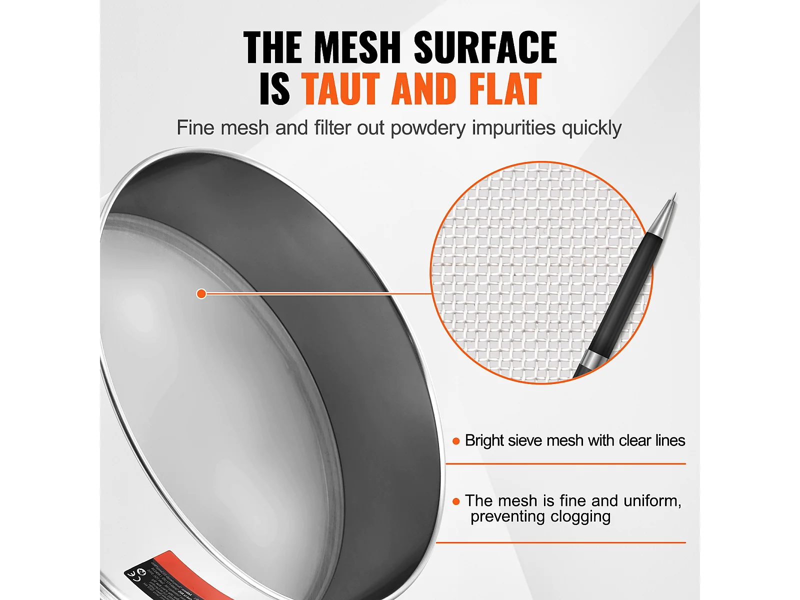 Bloemzeef SucceBuy Fijnmazige Bloemzeef, Zeef met 80 Mazen, Roestvrij Staal van Voedingskwaliteit 304, Diameter 32 cm, Fijnmazige Zeef voor Koken, 5 Mazen
