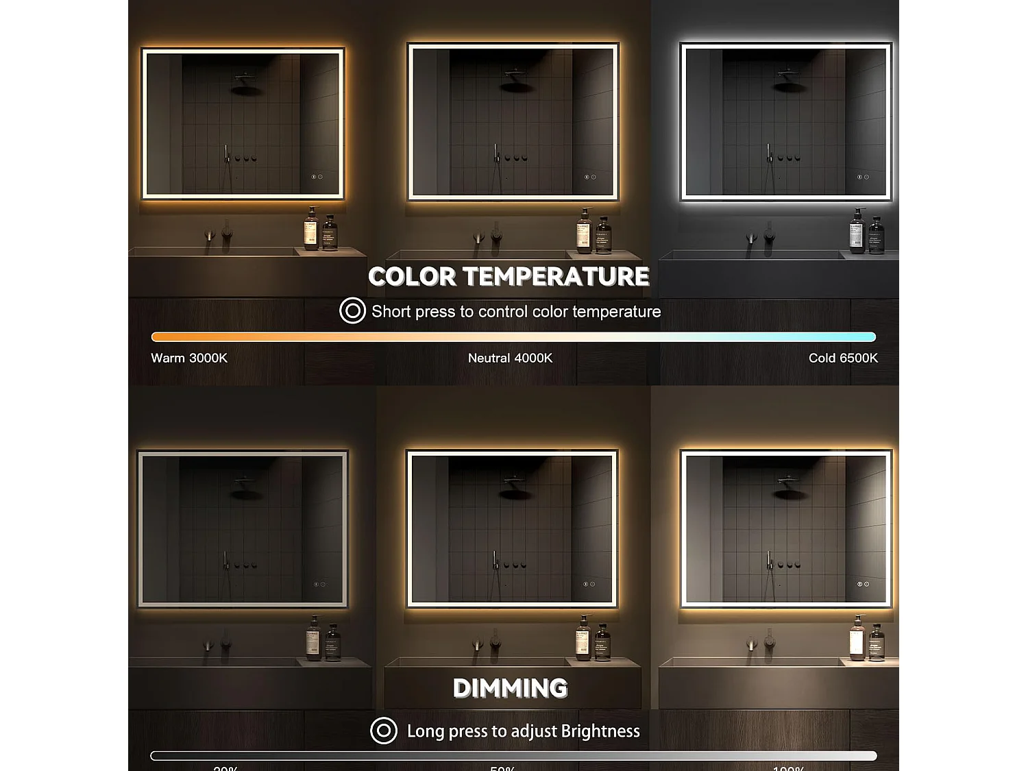 60x80cm LED badkamerspiegel, 30W, anticondens, 3 kleuren, dimbaar, aanraakschakelaar, explosieveilig, geheugenfunctie, IP44 waterdicht