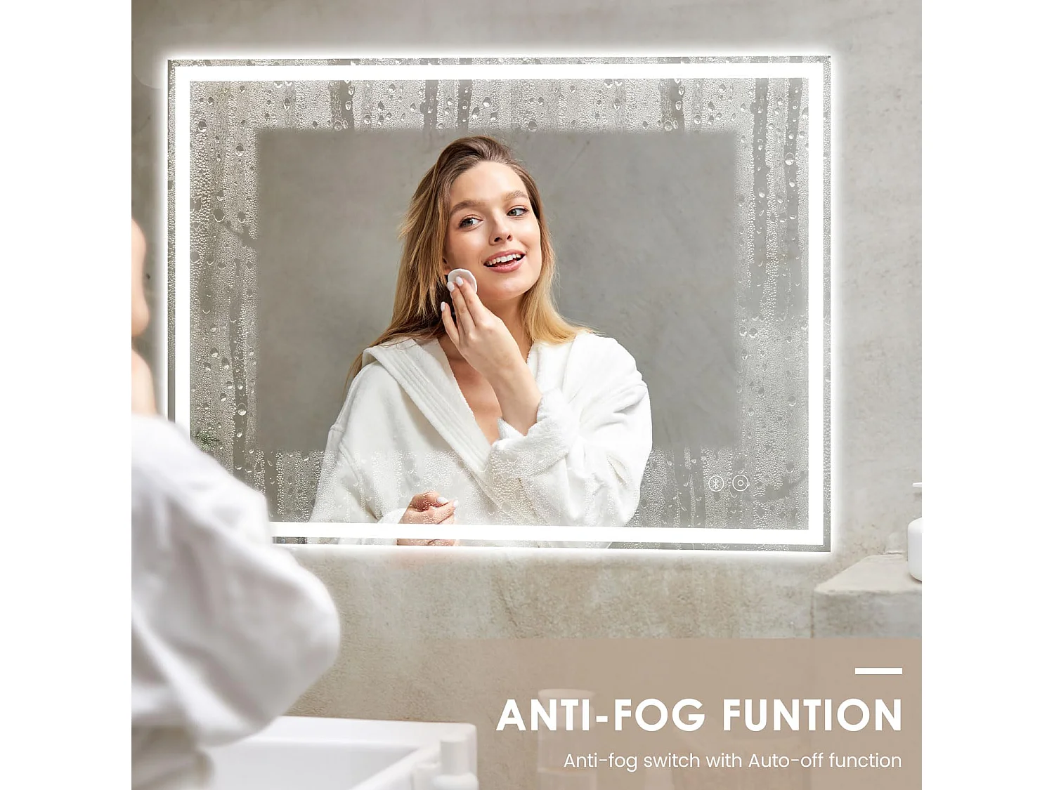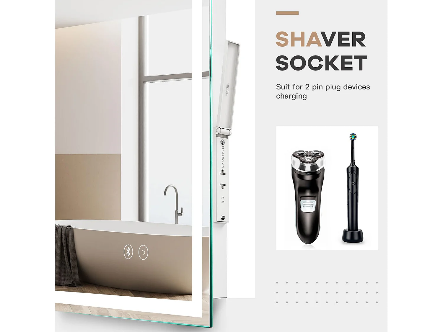 Bluetooth badkamerspiegel 60x80cm, 45W LED, anticondens, 3 instelbare kleuren, touchschakelaar, geheugenfunctie, geïntegreerde scheerstopcontact
