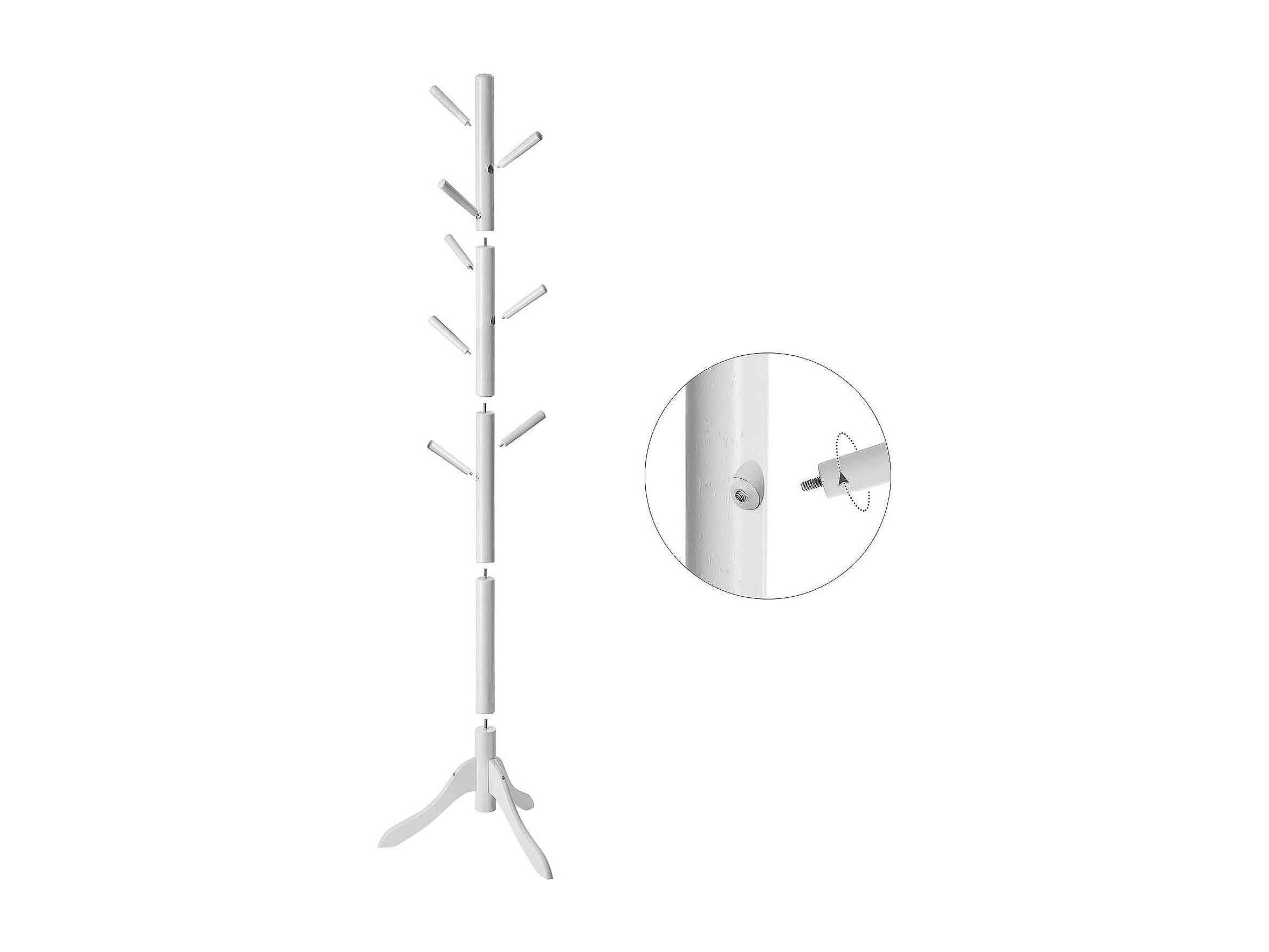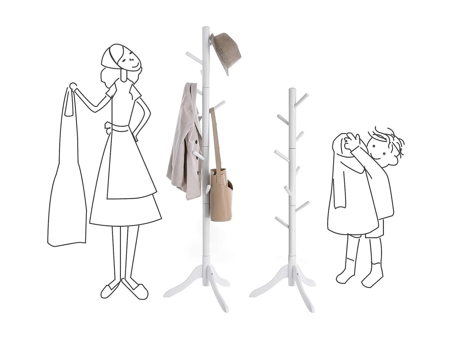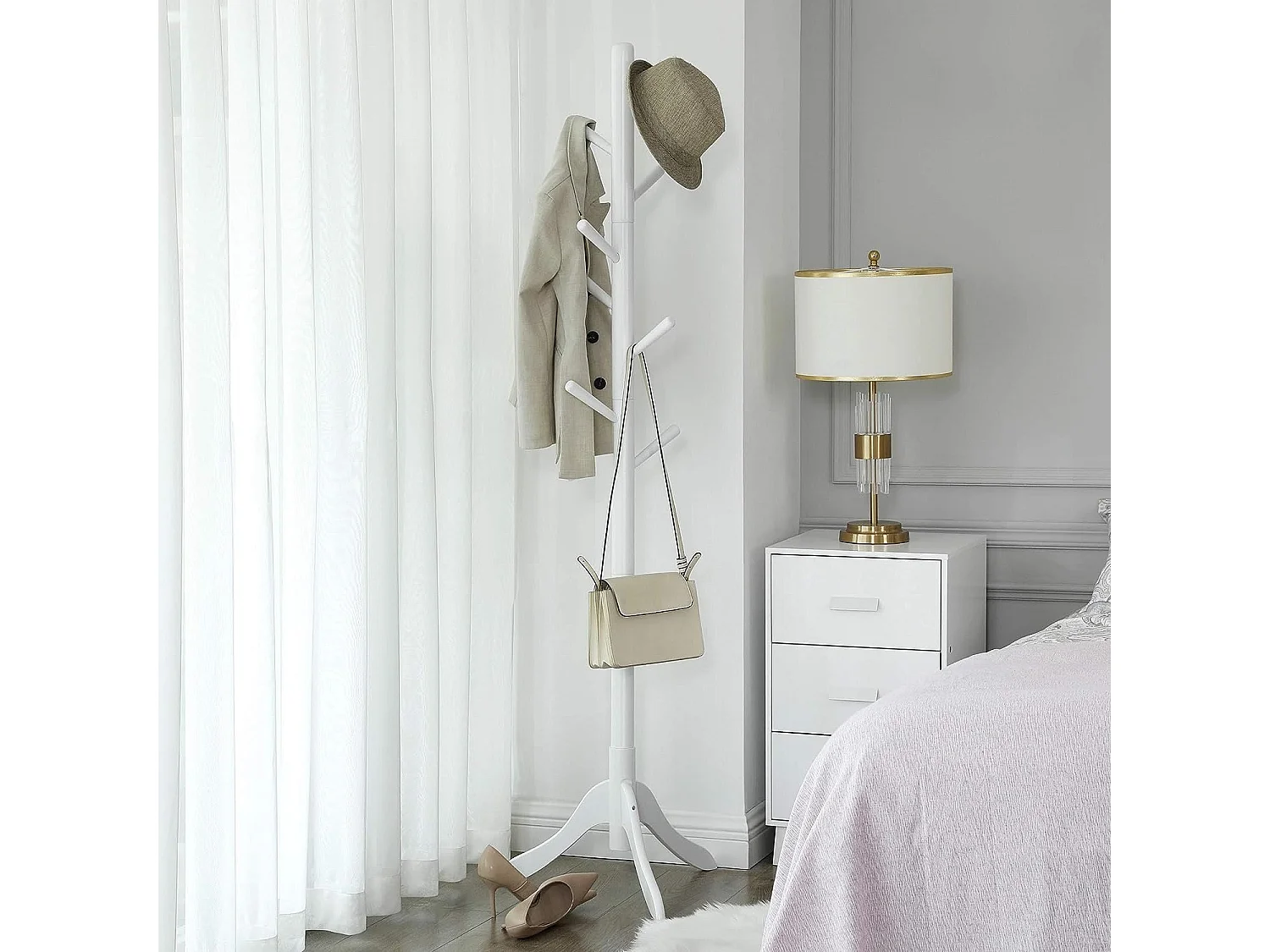 Kapstok Wit Houten Staande, 8 Haken - H175 cm
