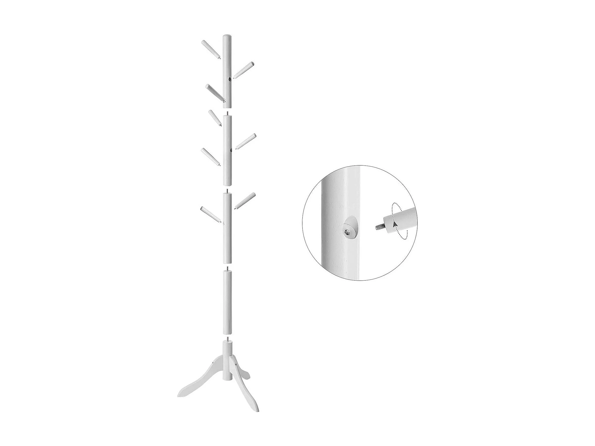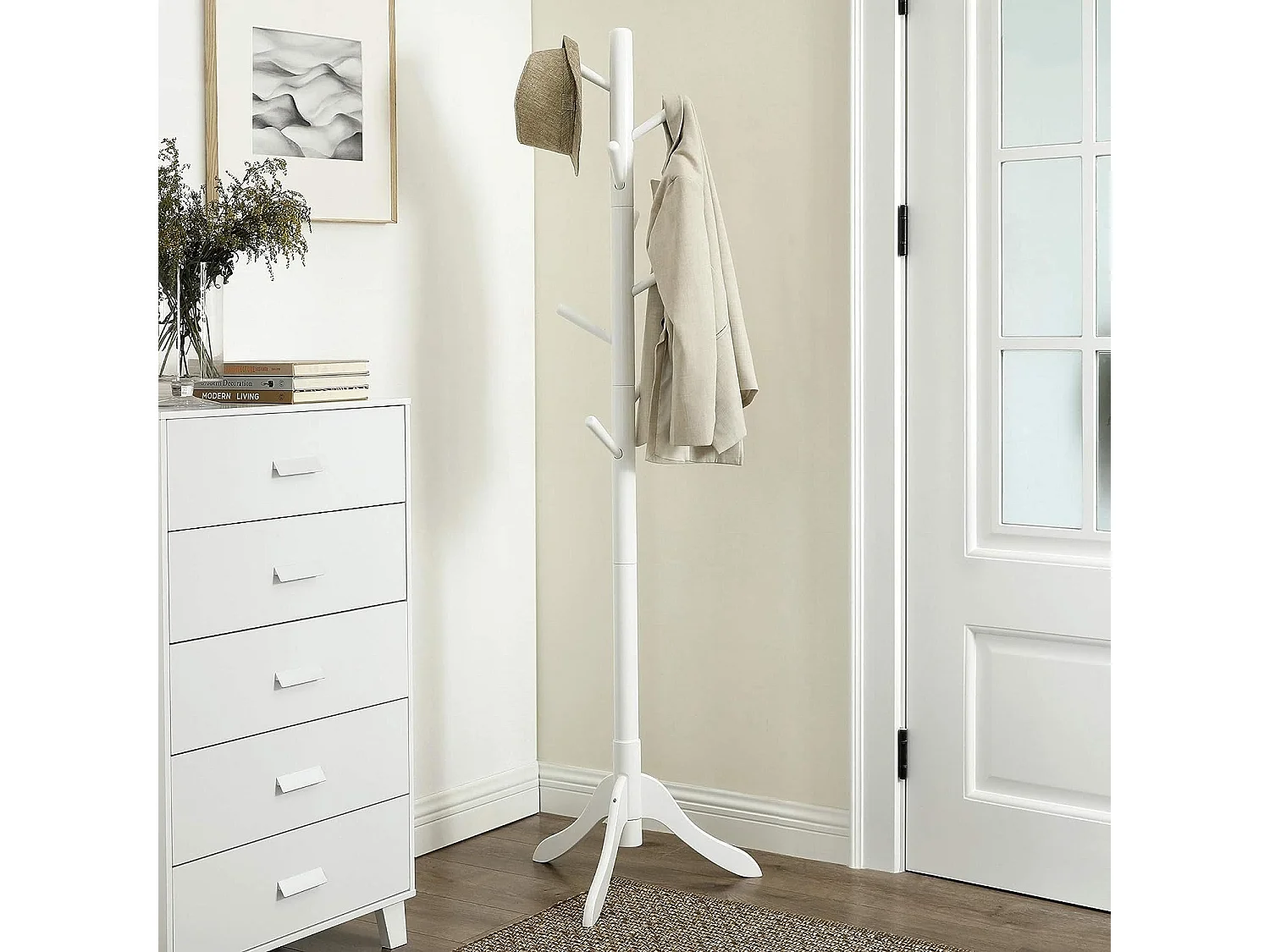 Kapstok op poten van wit hevea hout met 8 haken - H 175 cm
