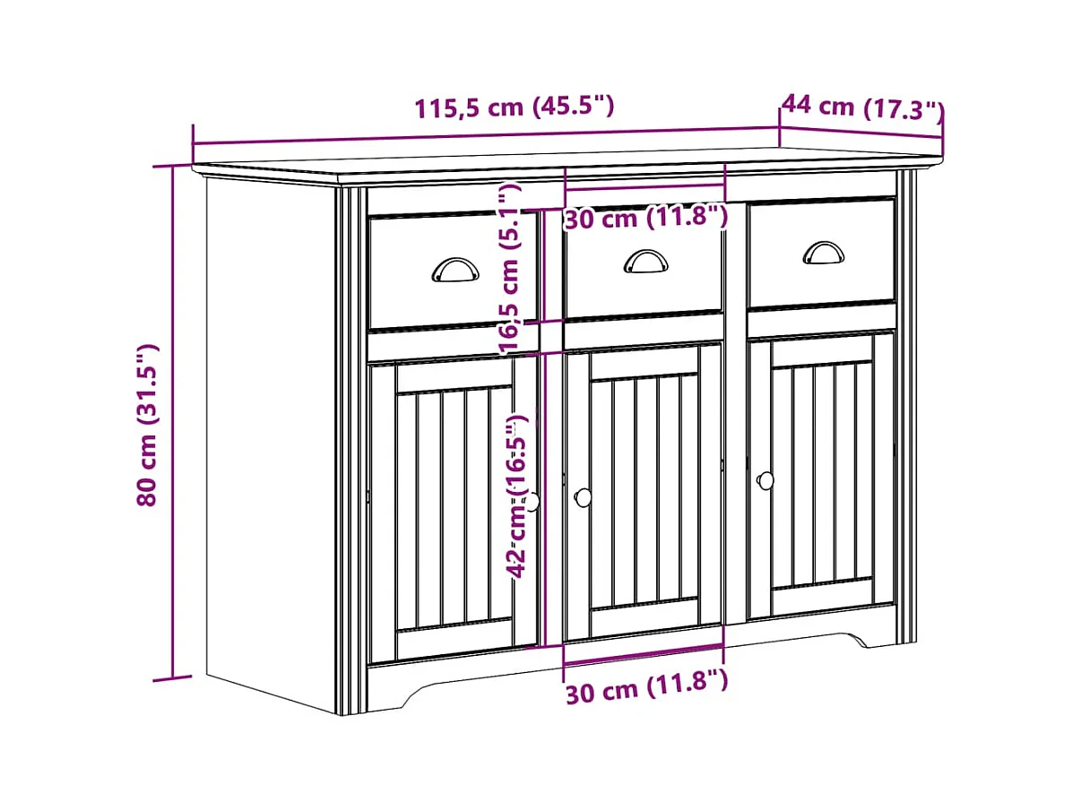 BODO grijs dressoir 115,5x44x80 cm massief grenenhout