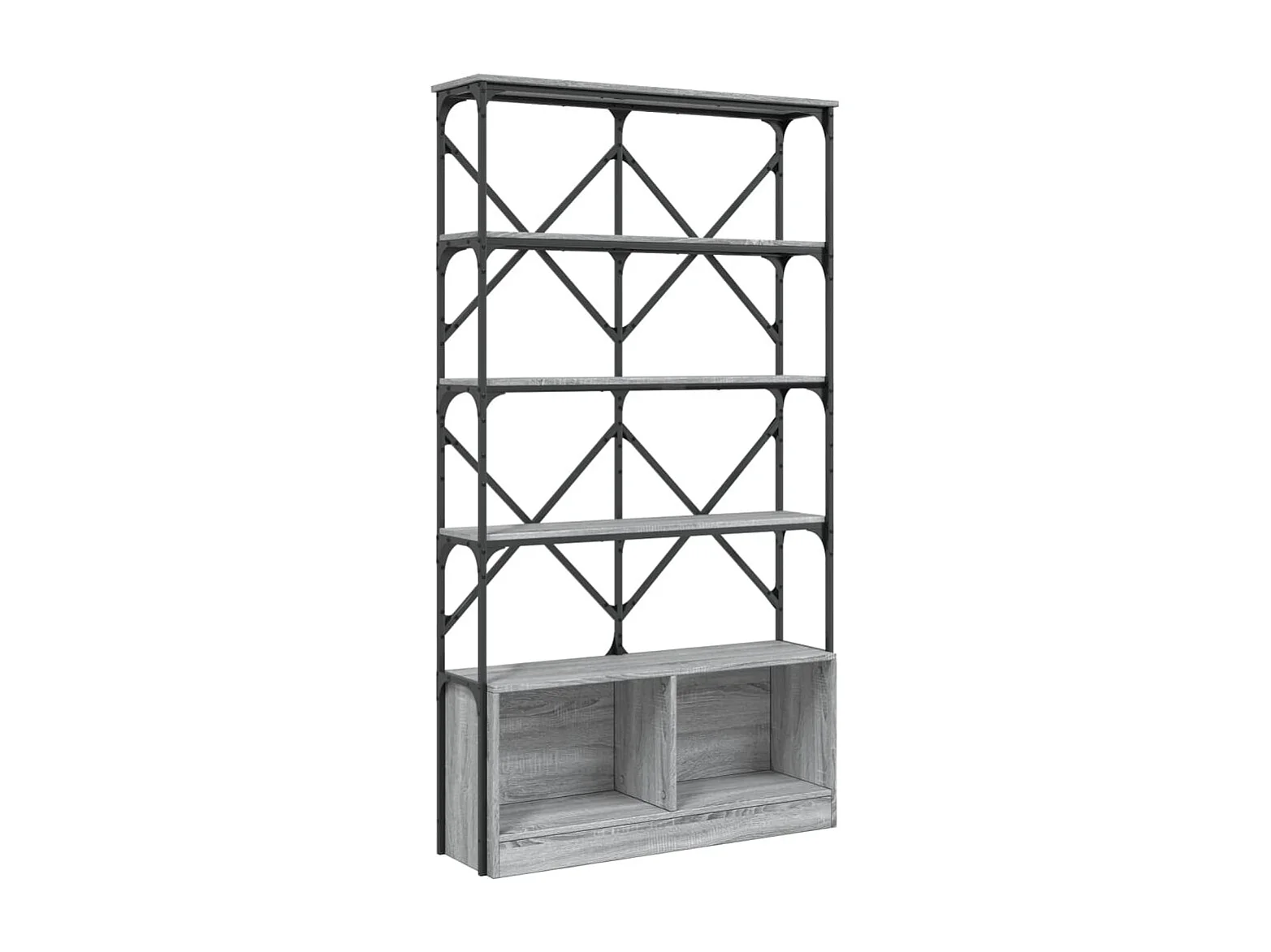 Boekenkast 100x26x180 cm bewerkt hout en metaal grijs sonoma