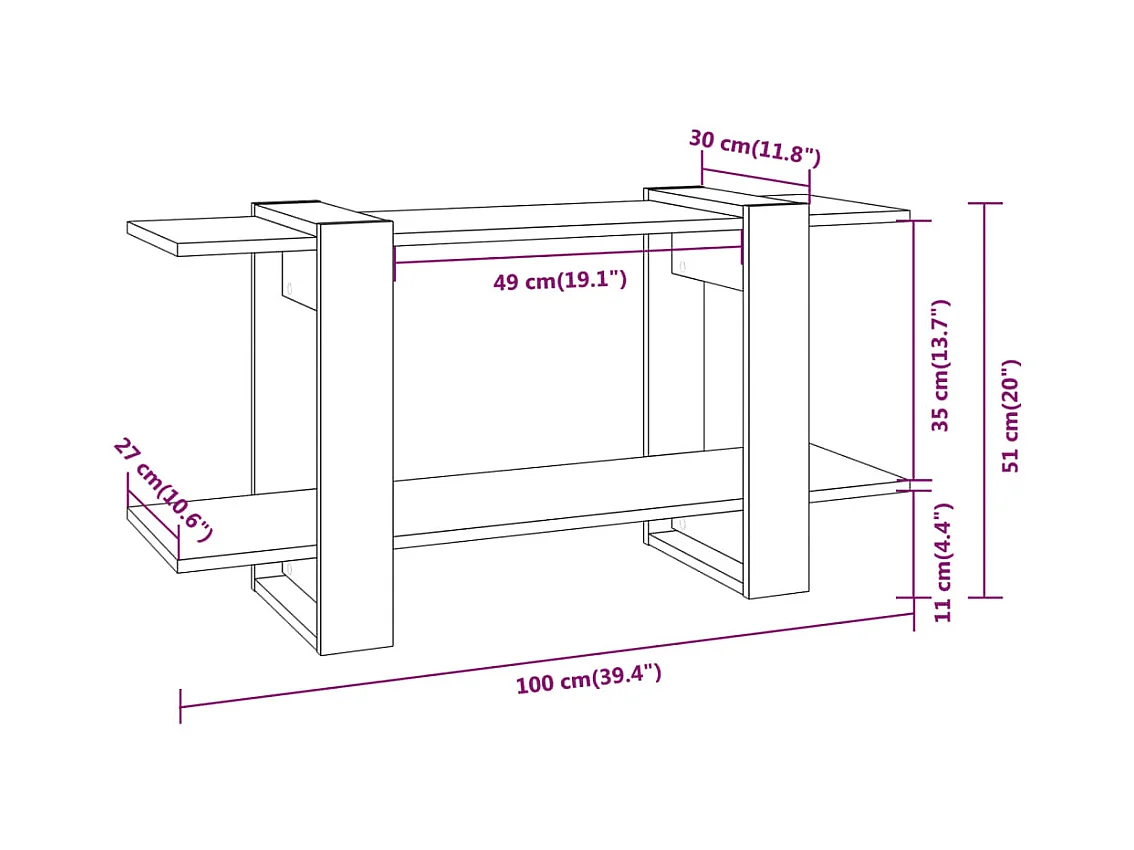Boekenkast 100x30x51 cm bewerkt hout grijs sonoma eiken