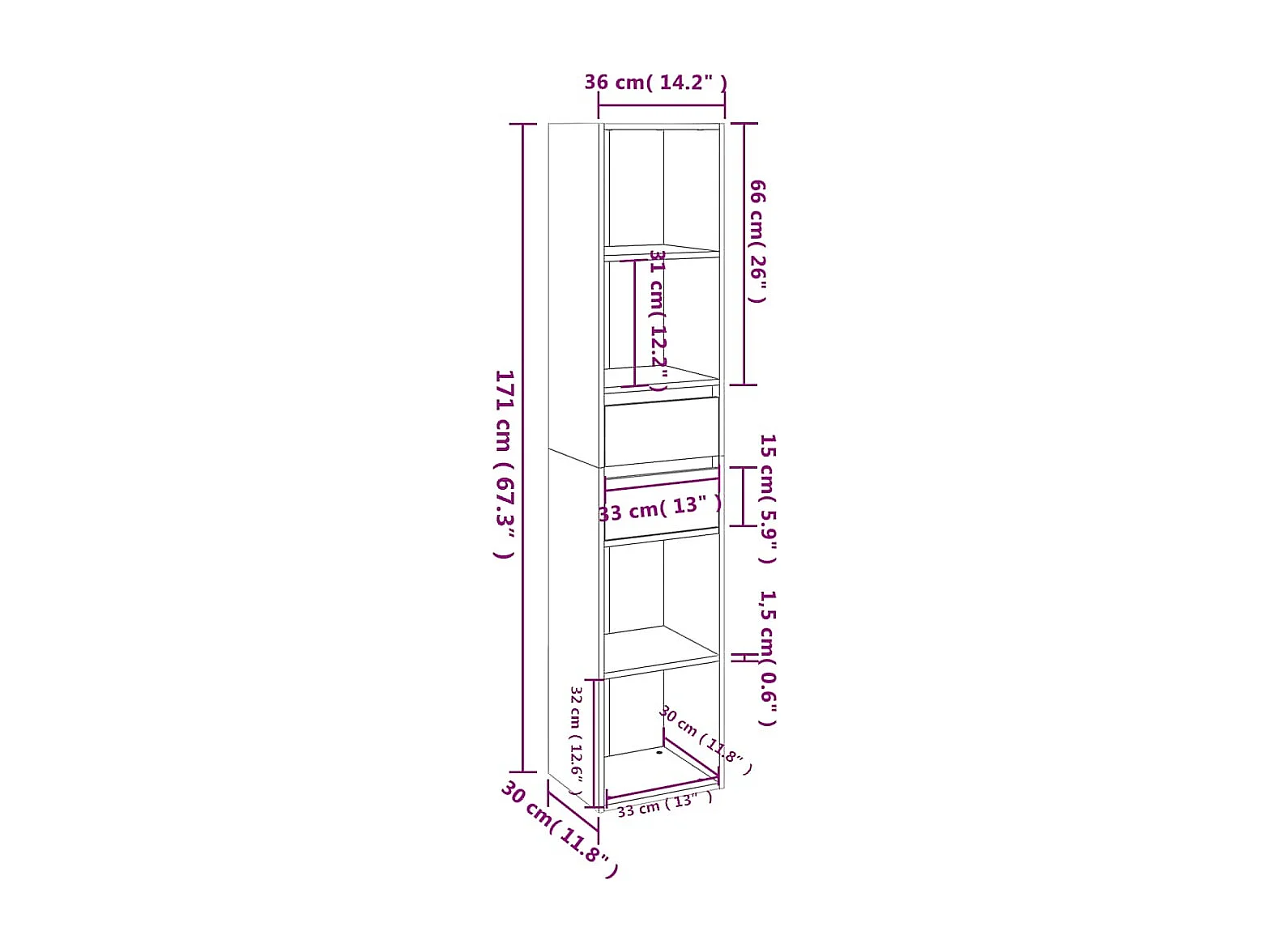 Boekenkast 36x30x171 cm bewerkt hout wit