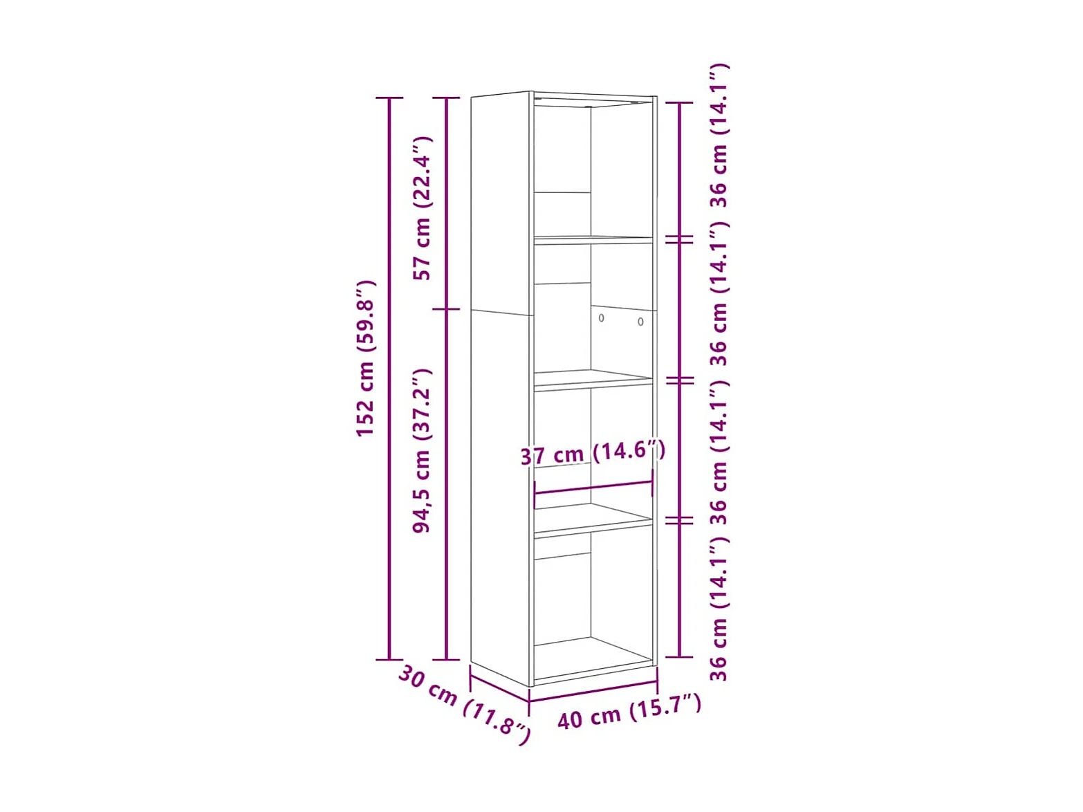 Boekenkast 40x30x152 cm bewerkt hout zwart