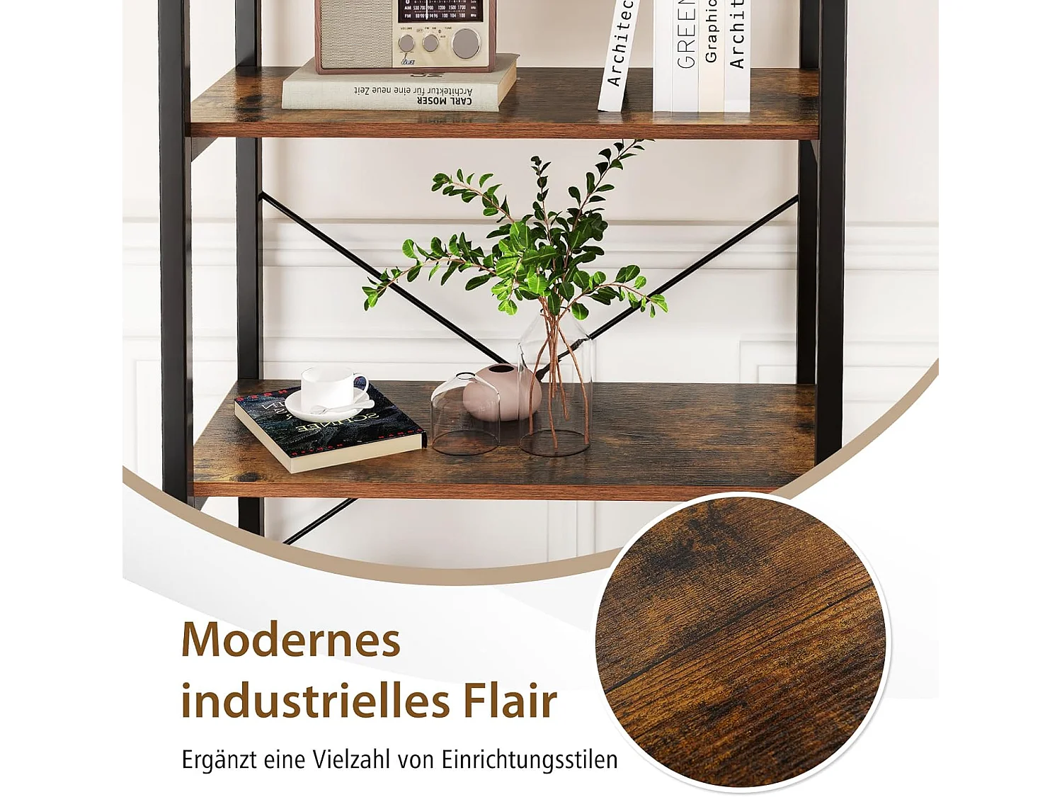 Parya Home Boekenkast met 4 niveaus, opbergrek, hoogte 120 cm