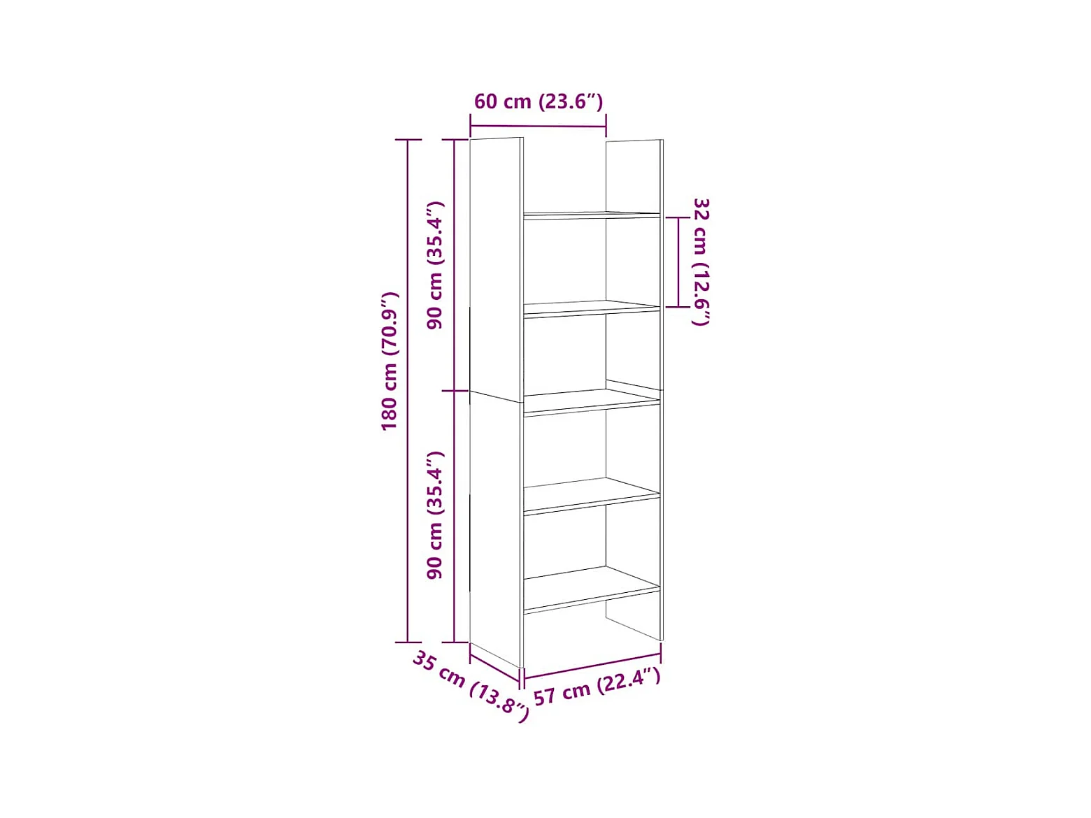 Boekenkast 60x35x180 cm bewerkt hout betongrijs