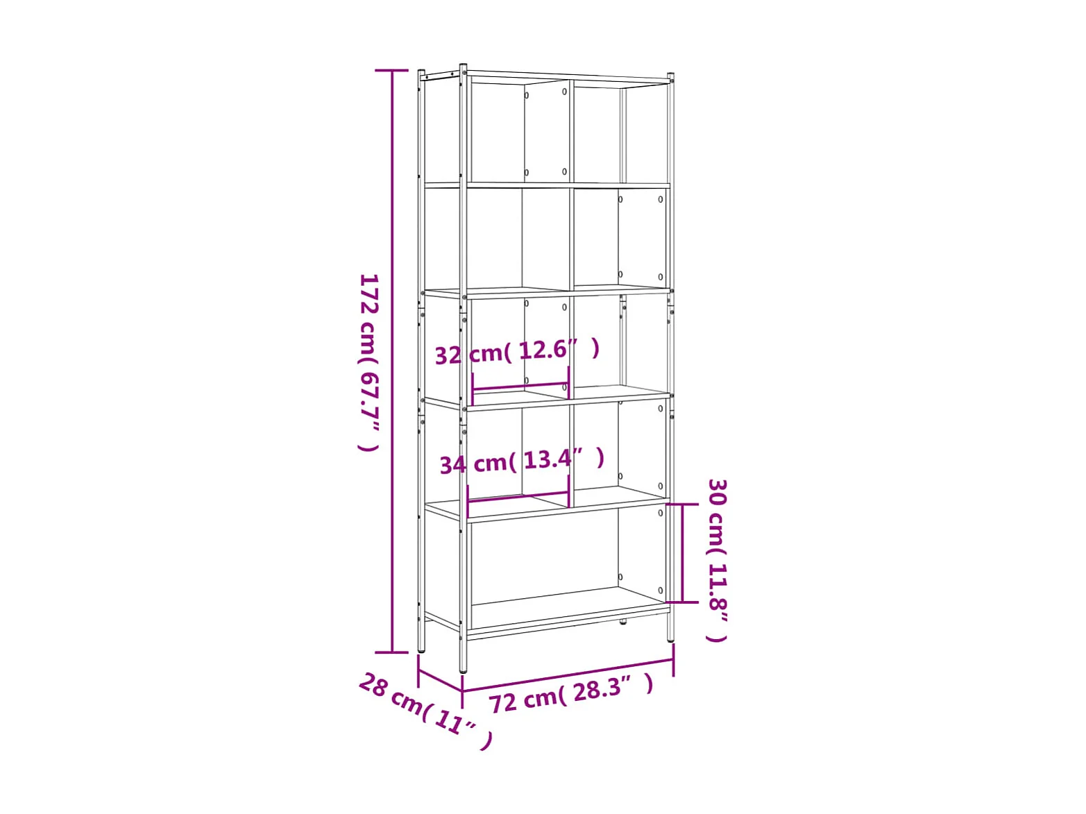 Boekenkast 72x28x172 cm bewerkt hout bruin eikenkleur