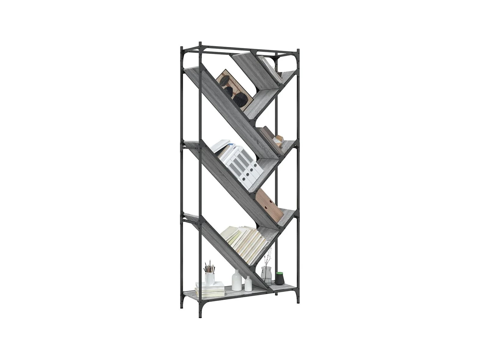 Boekenrek 91x36x176 cm bewerkt hout en staal grijs sonoma