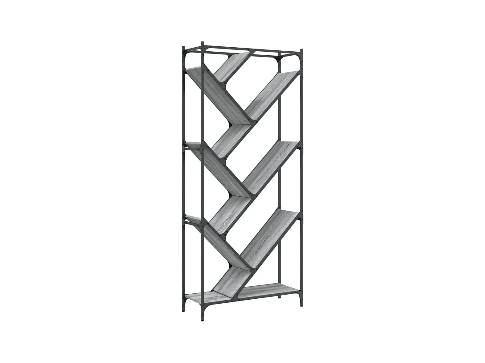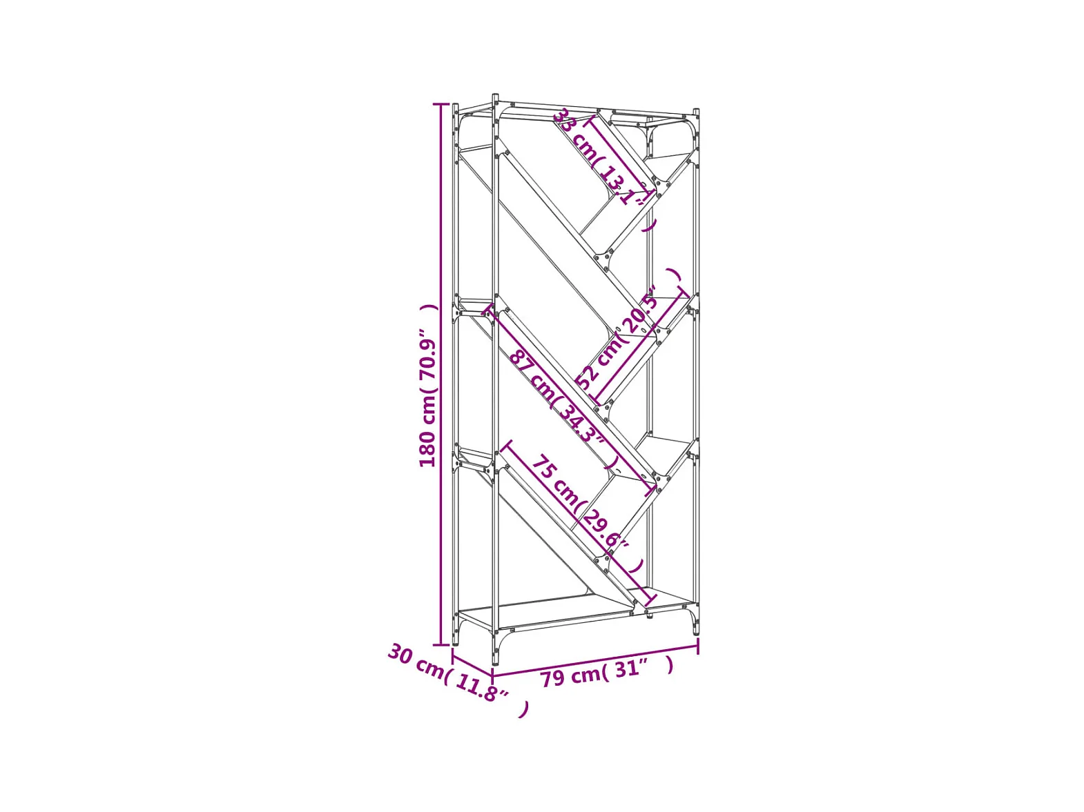 Boekenkast 79x30x180 cm bewerkt hout en metaal grijs sonoma