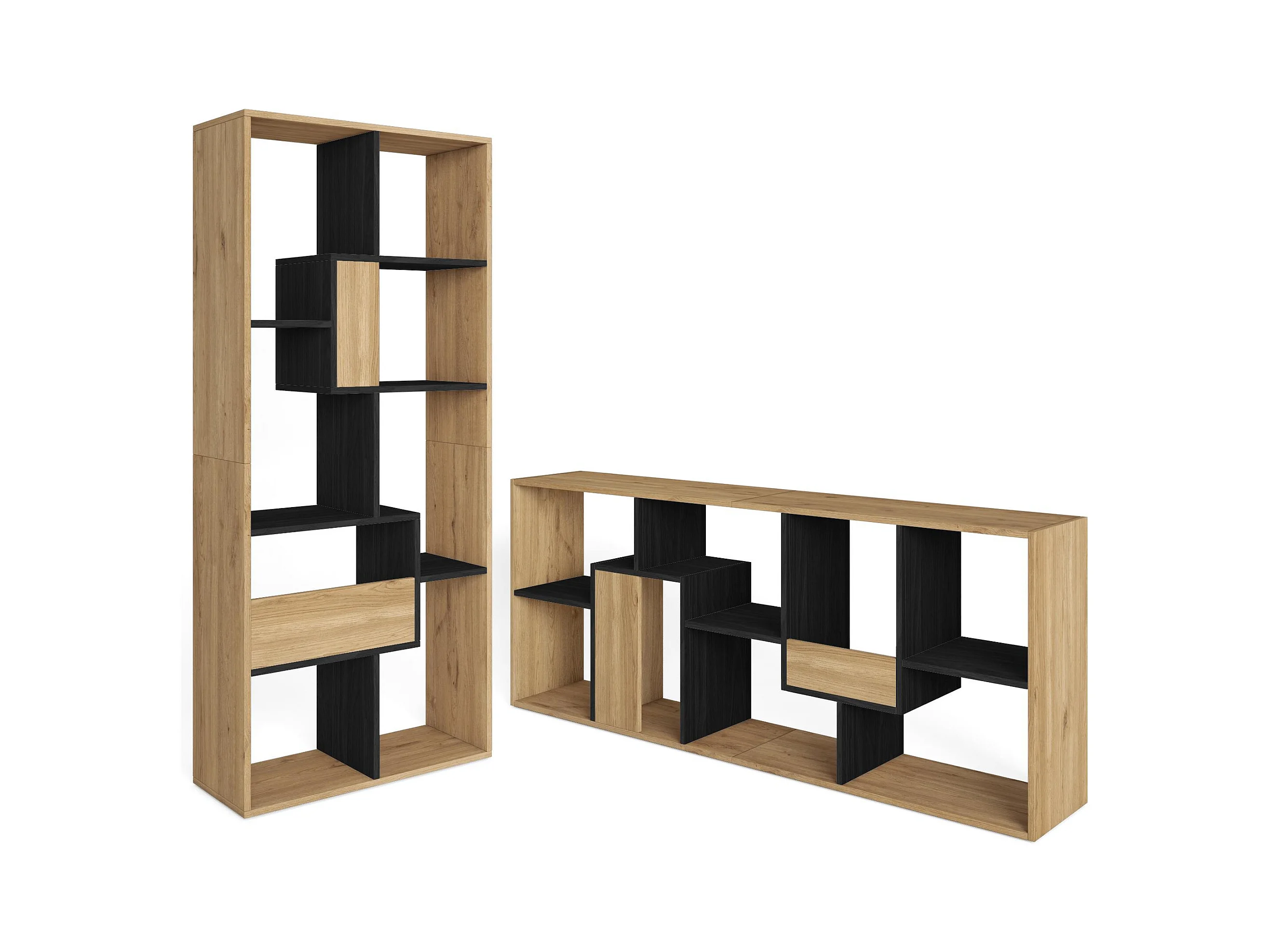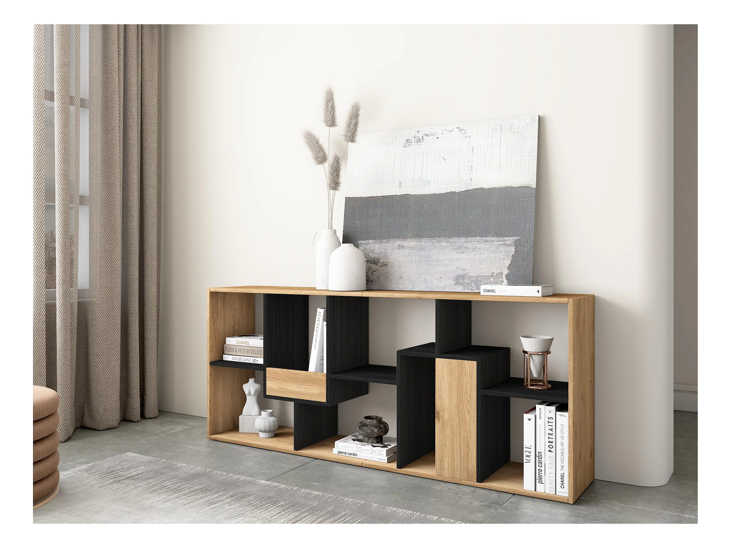 Boekenkast, Boekenplank, 162x67x31cm, Kantoorplank, Eiken/Zwart