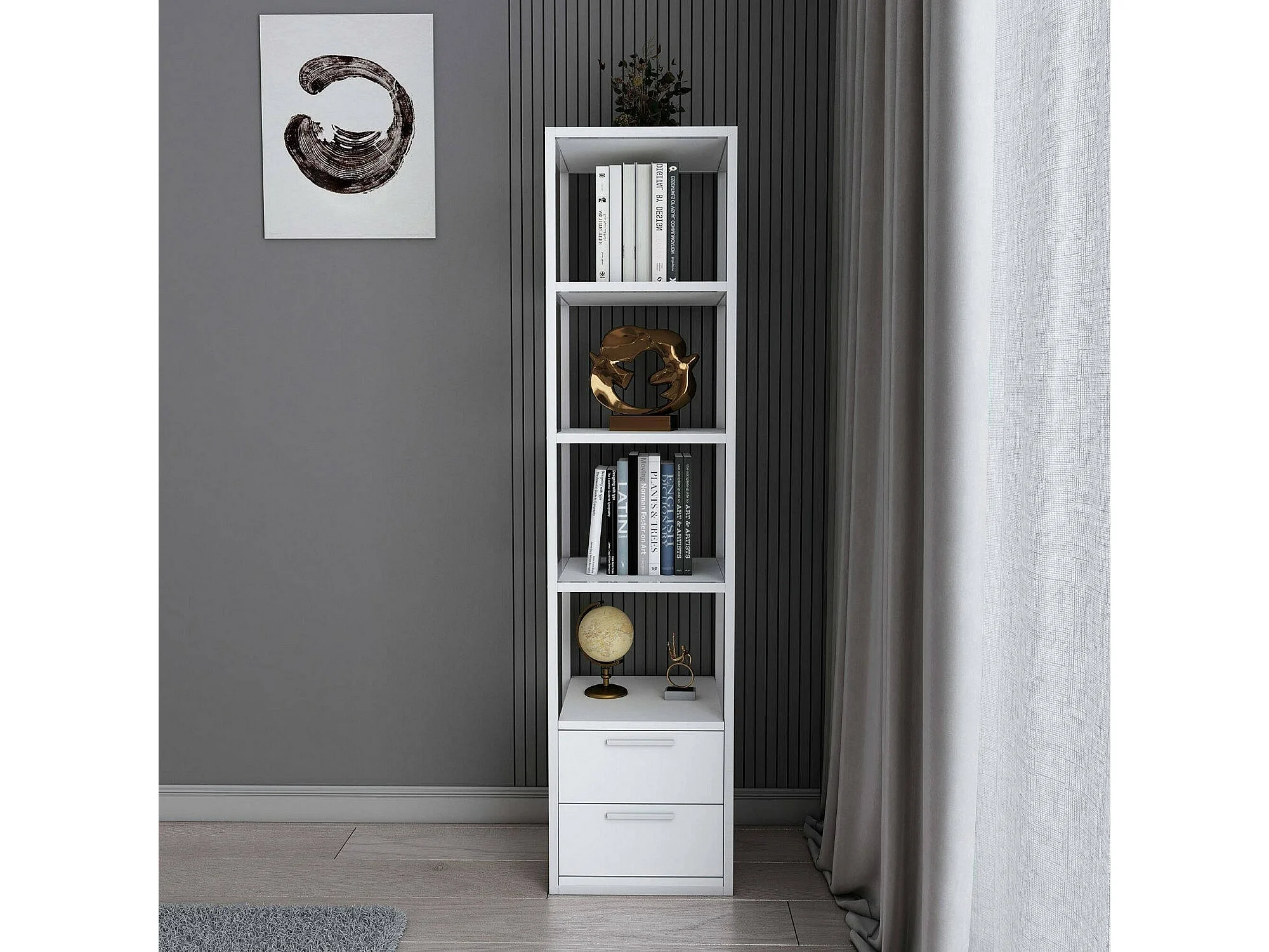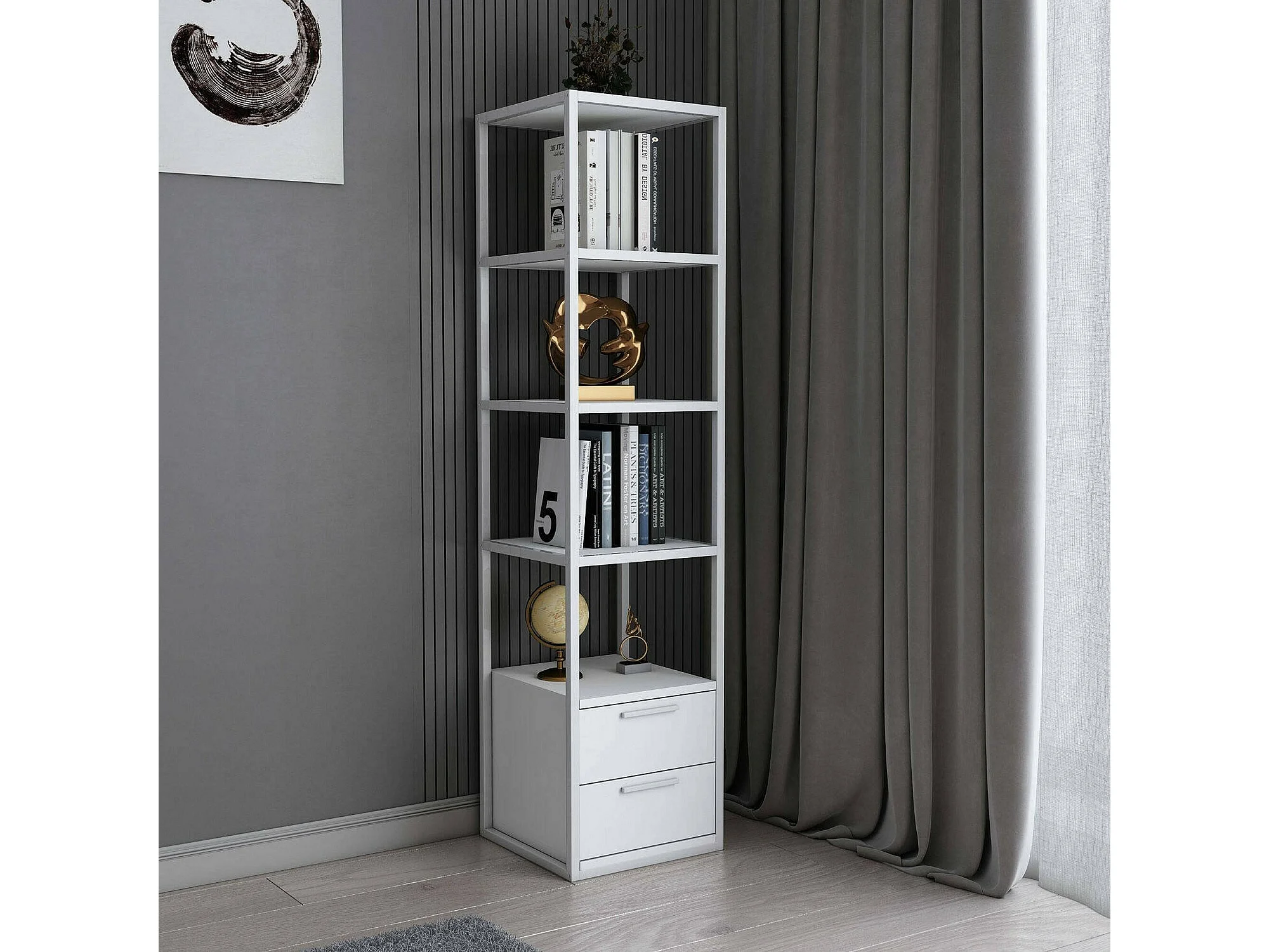 Boekenkast Dfogliat, kantoorplank,Boekenhouder, Bibliotheek, 39x39h169 cm, Wit