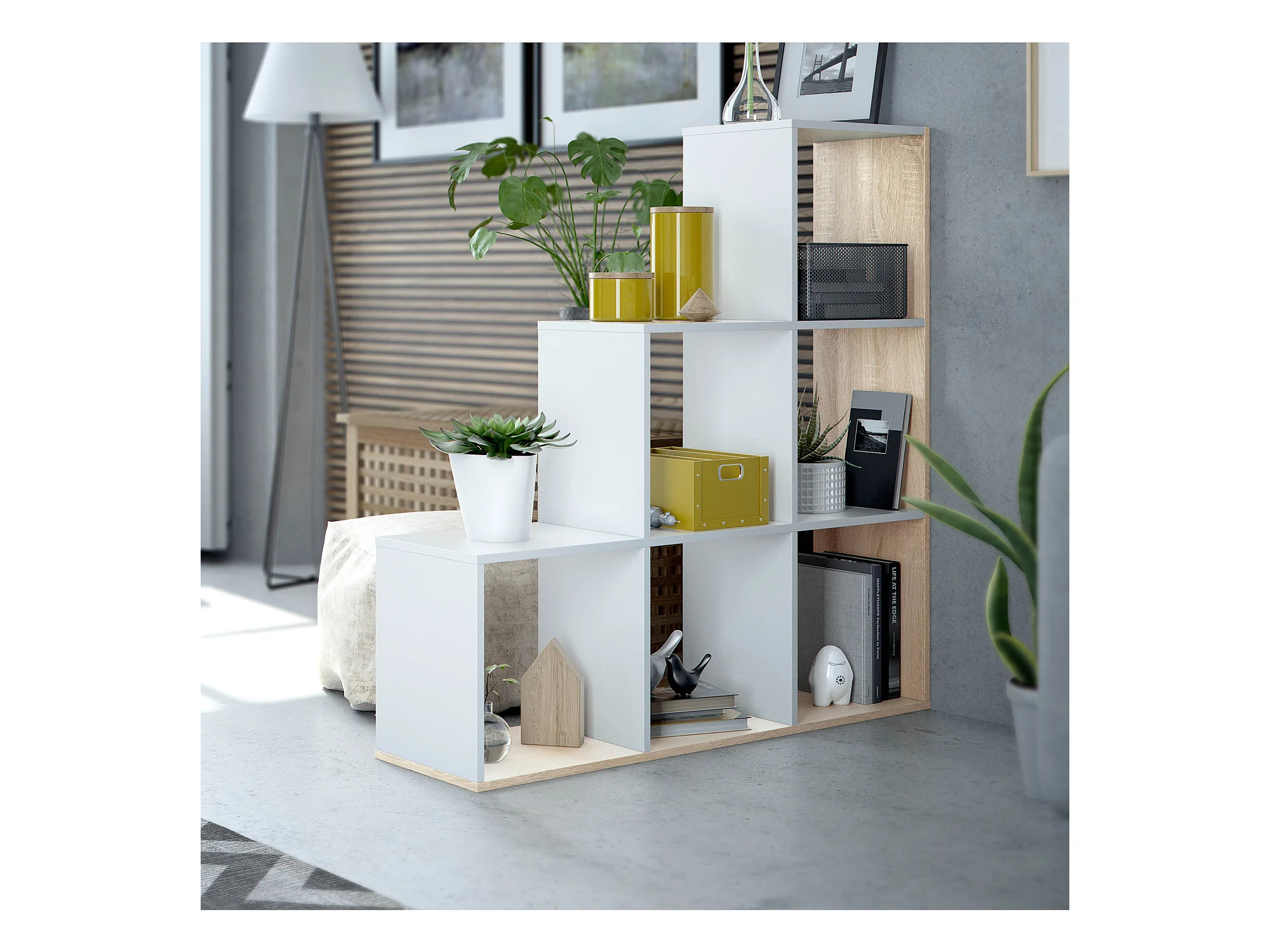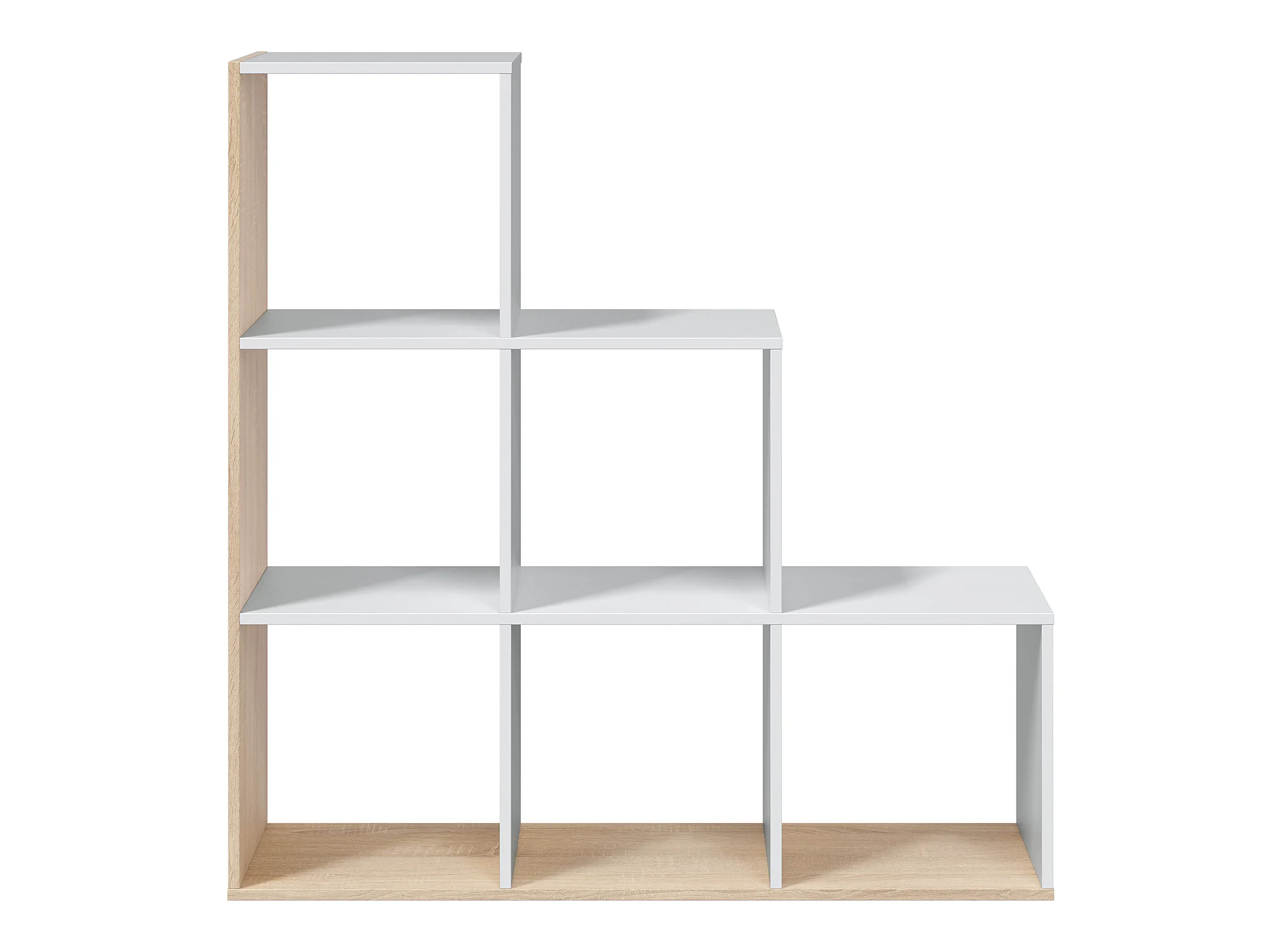 Boekenkast Estela in wit/eiken kleur, voor woonkamer, eetkamer of kantoor.