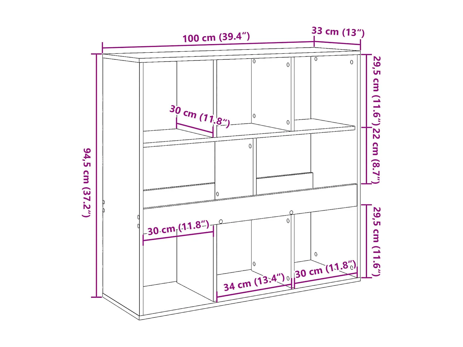 Boekenkast / kamerscherm 100x33x115 cm betongrijs