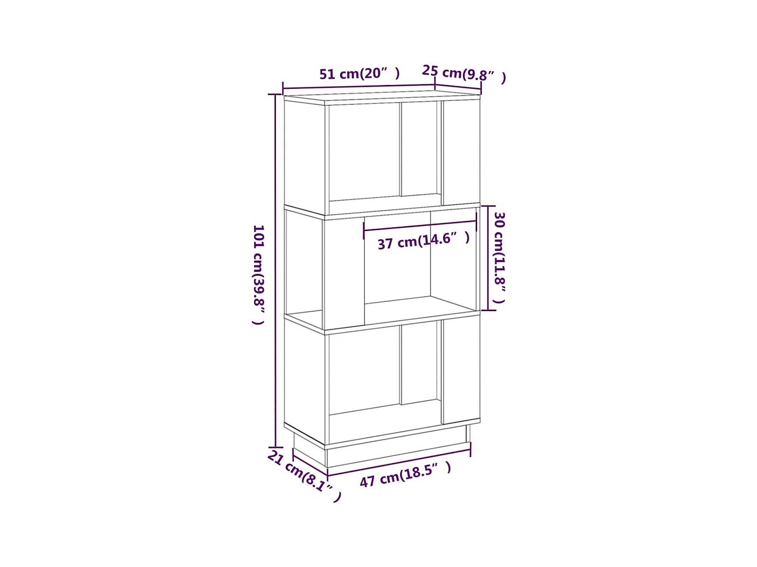 Boekenkast/kamerscherm 51x25x101 cm massief grenenhout grijs
