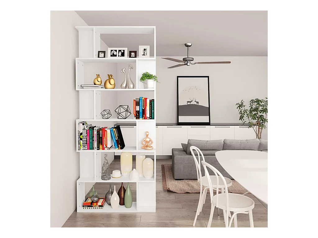 Boekenkast/kamerscherm 80x30x135 cm bewerkt hout hoogglans wit