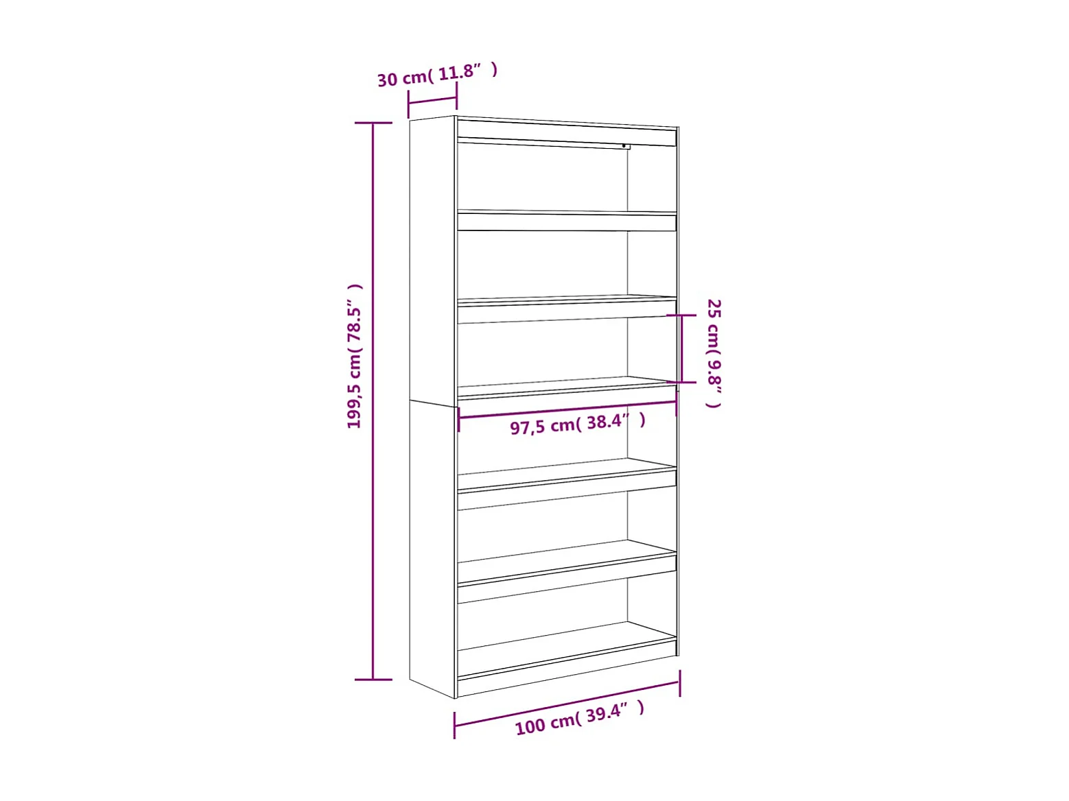 Boekenkast/kamerverdeler 100x30x199,5 cm grenenhout