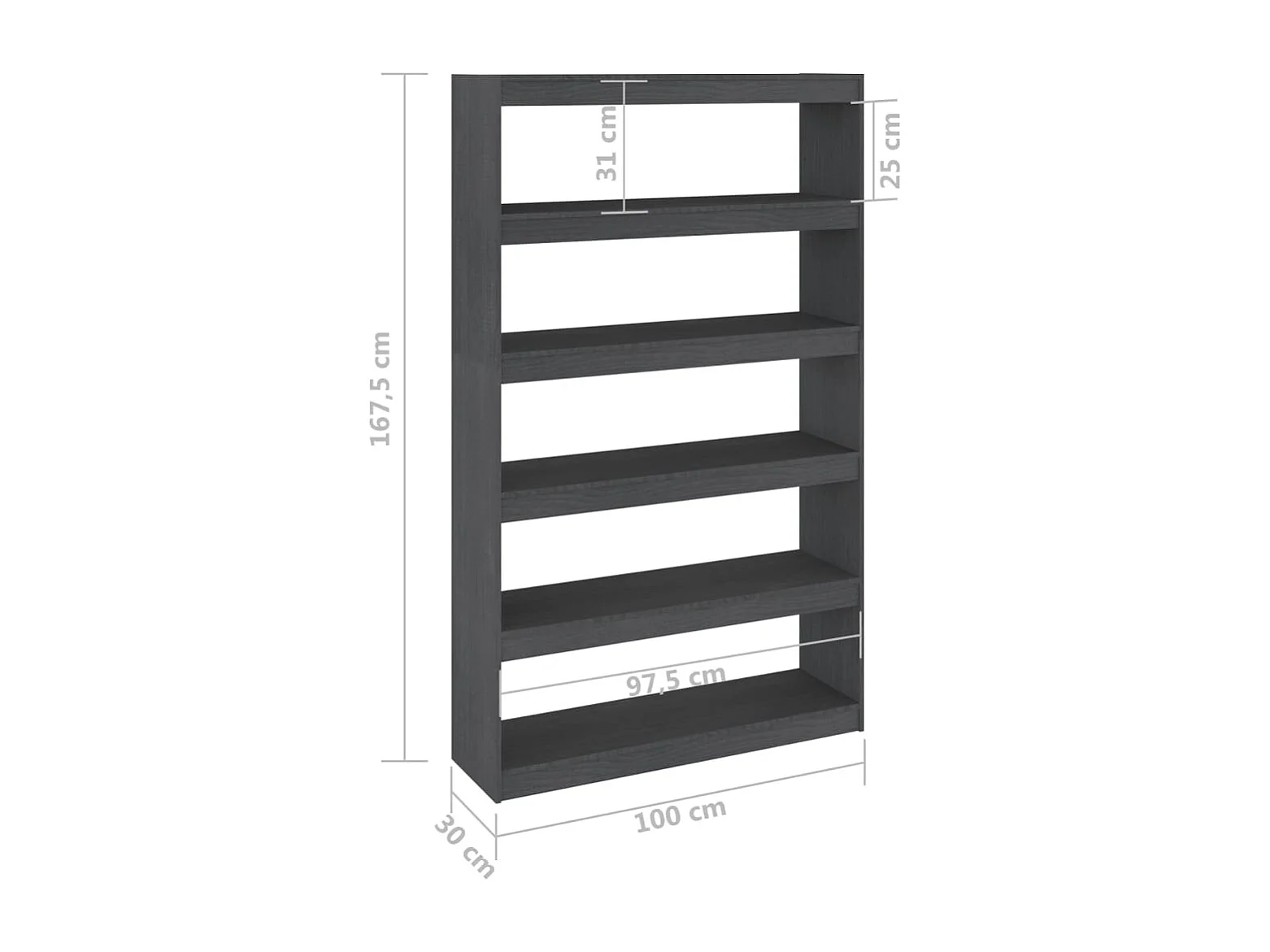 Boekenkast/kamerverdeler grijs 100x30x167,5 cm massief grenen