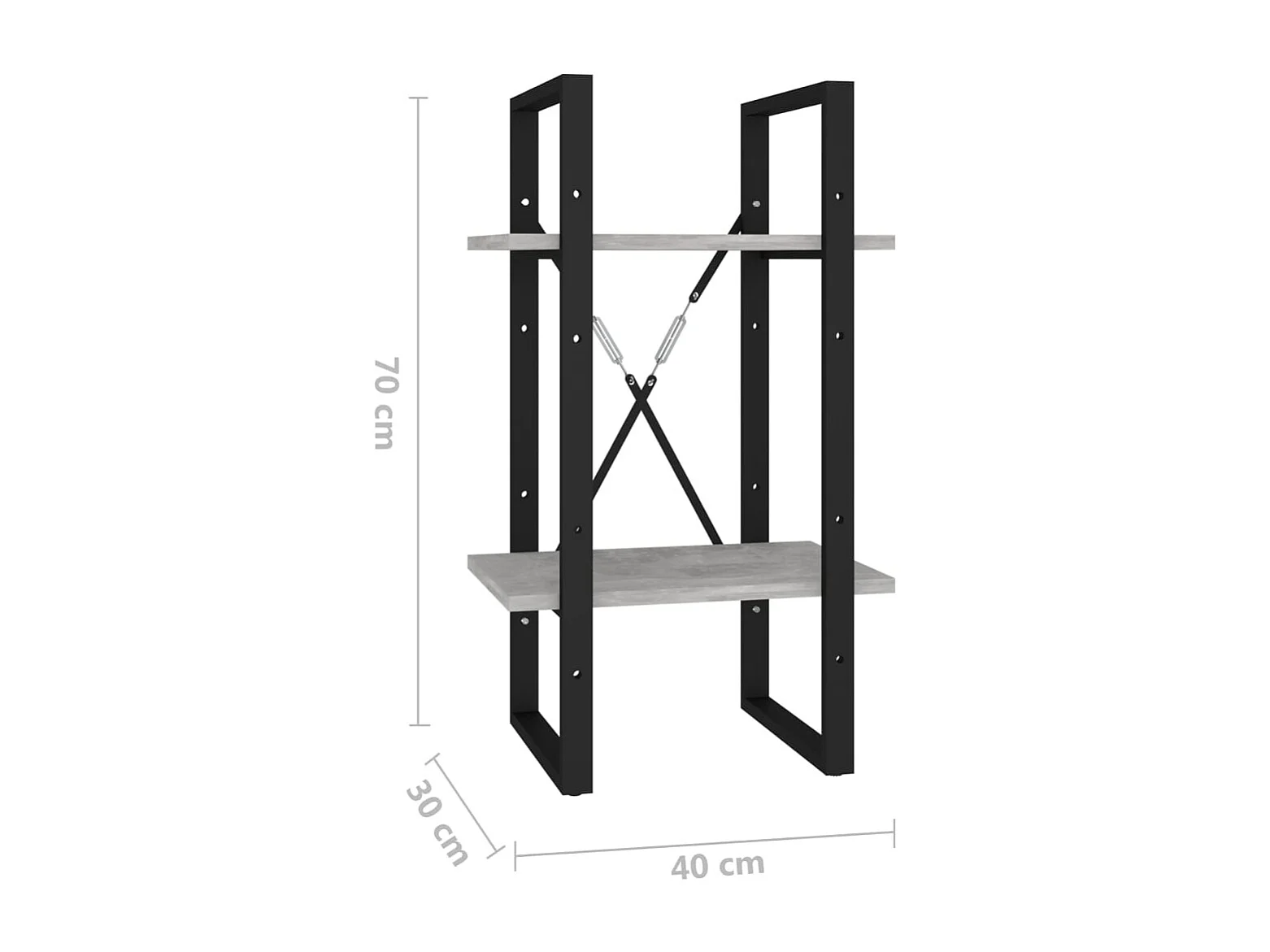 Boekenkast met 2 niveaus, betongrijs, 40x30x70 cm, bewerkt hout