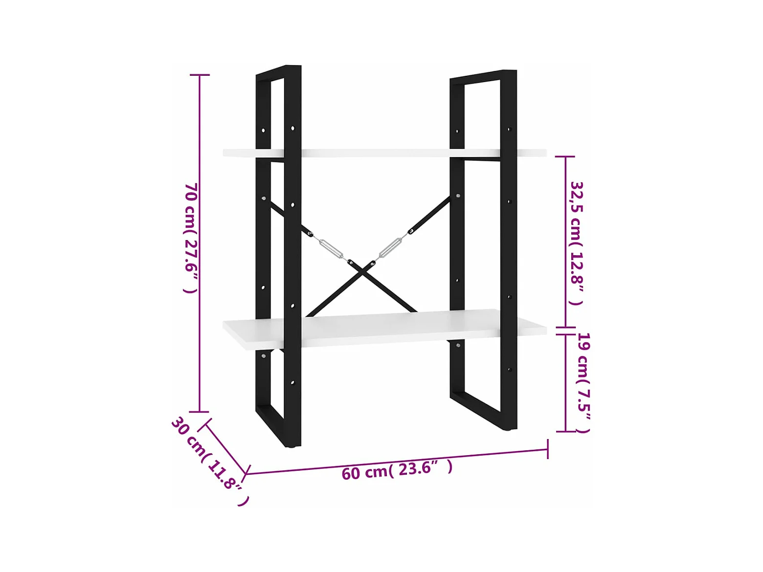 Boekenkast met 2 schappen 60x30x70 cm bewerkt hout wit