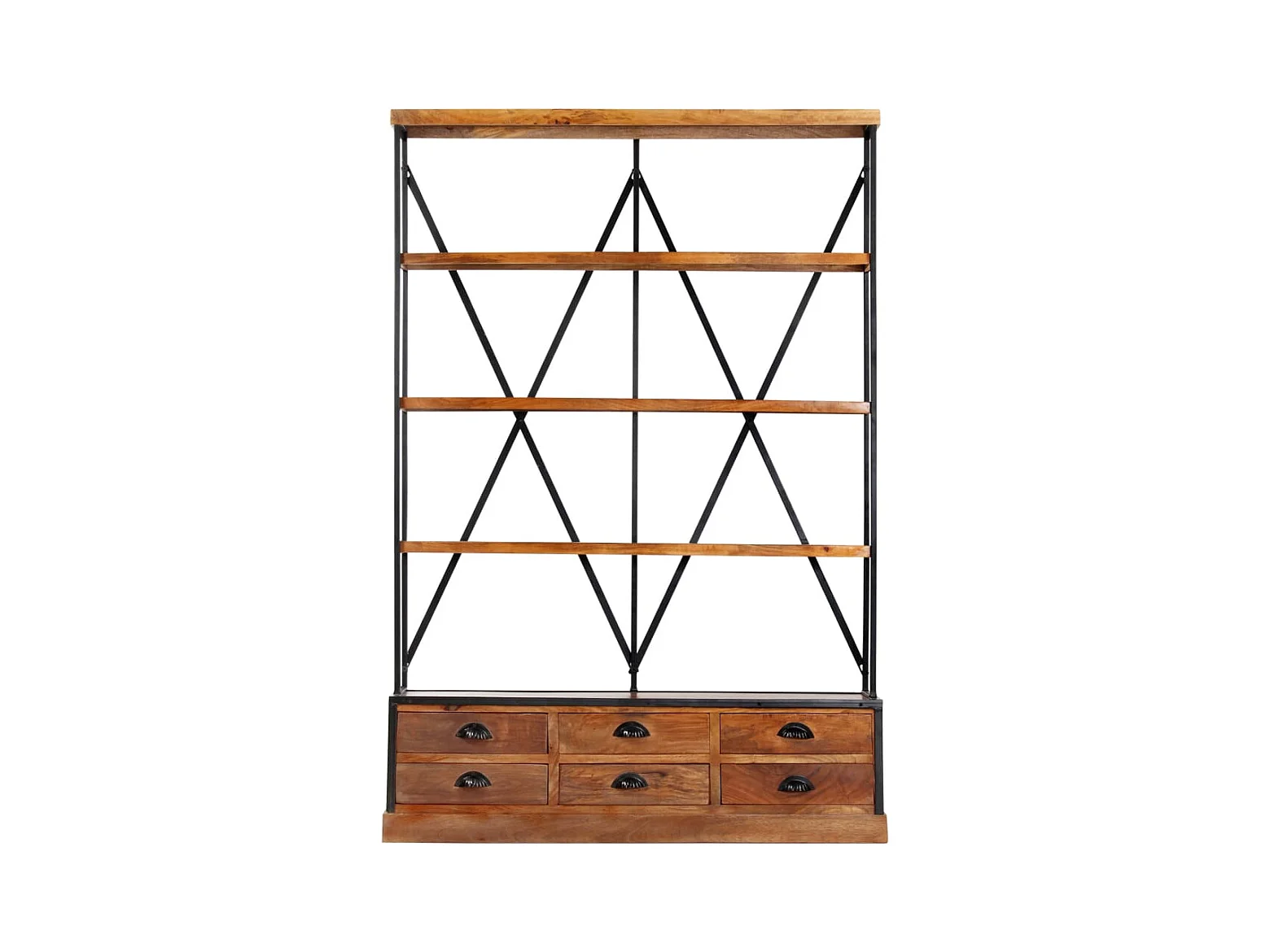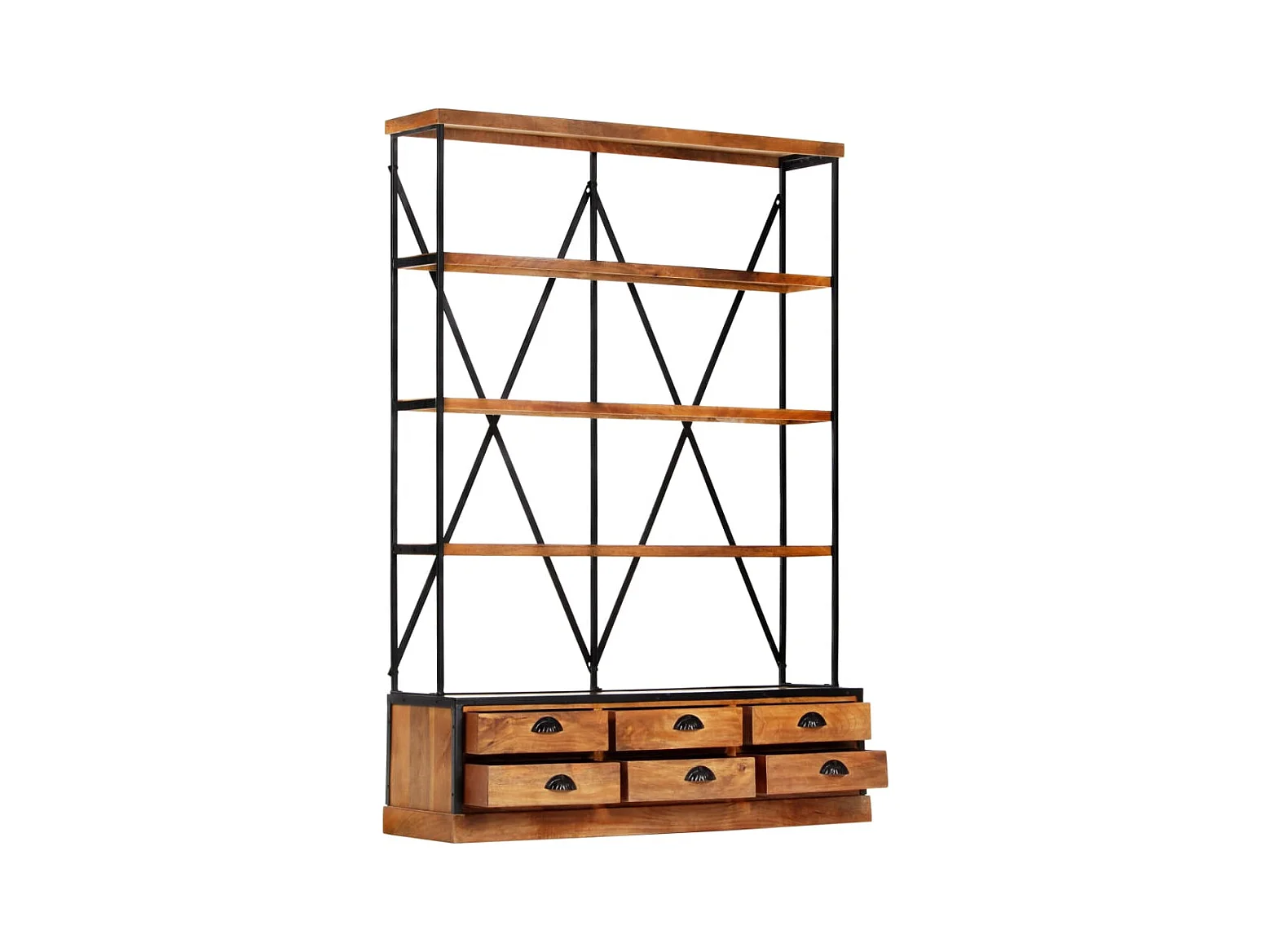 Boekenkast met 4 planken en 6 lades 122x36x181 cm Mangohout