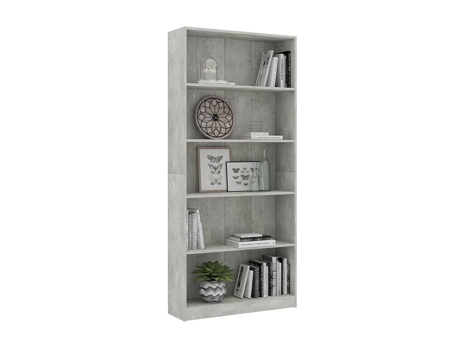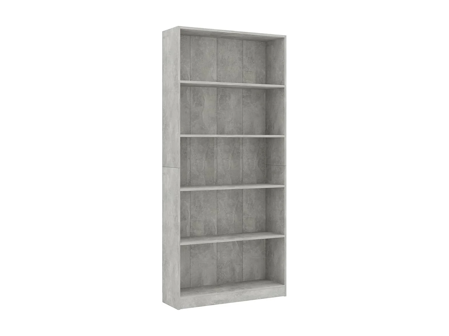 Boekenkast met 5 niveaus Betongrijs 80x24x175cm Technisch hout