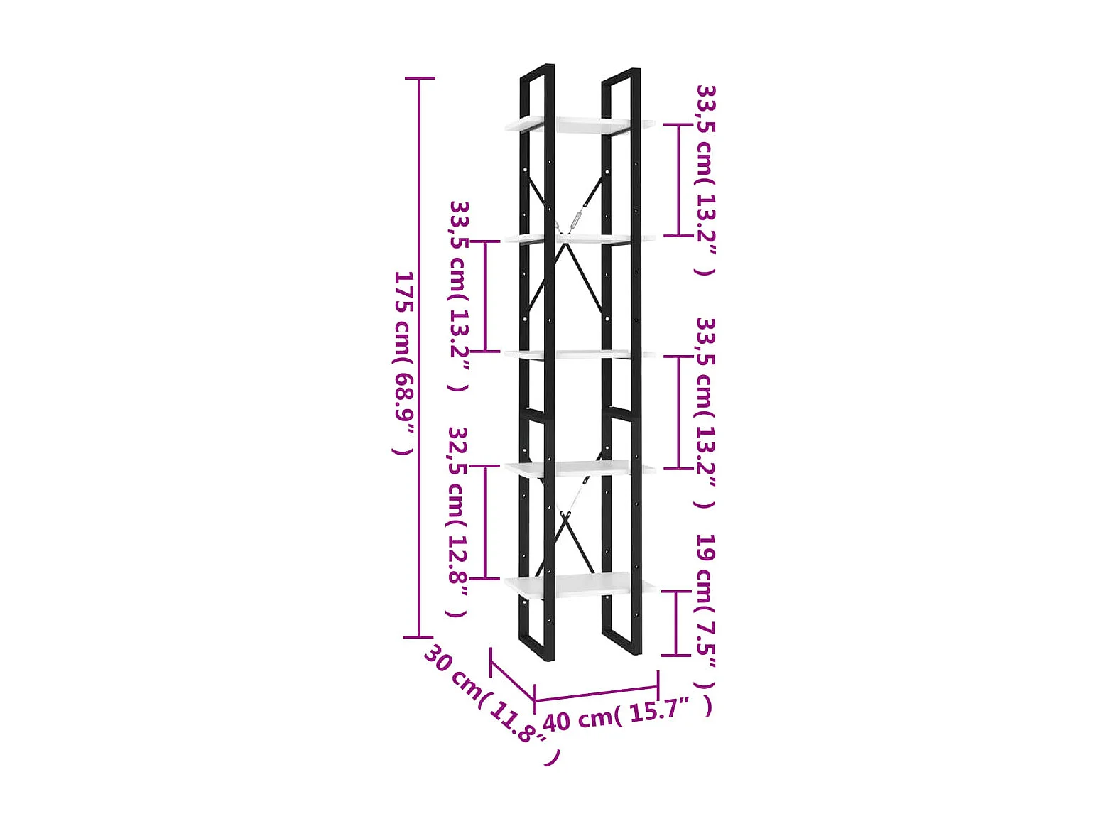 Boekenkast met 5 niveaus Wit 40x30x175 cm Technisch hout