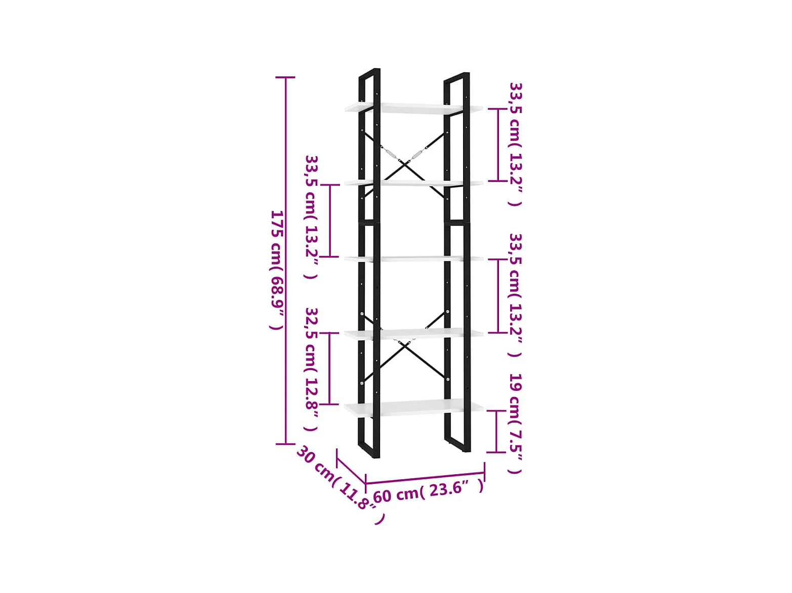 Boekenkast met 5 schappen 60x30x175 cm bewerkt hout wit