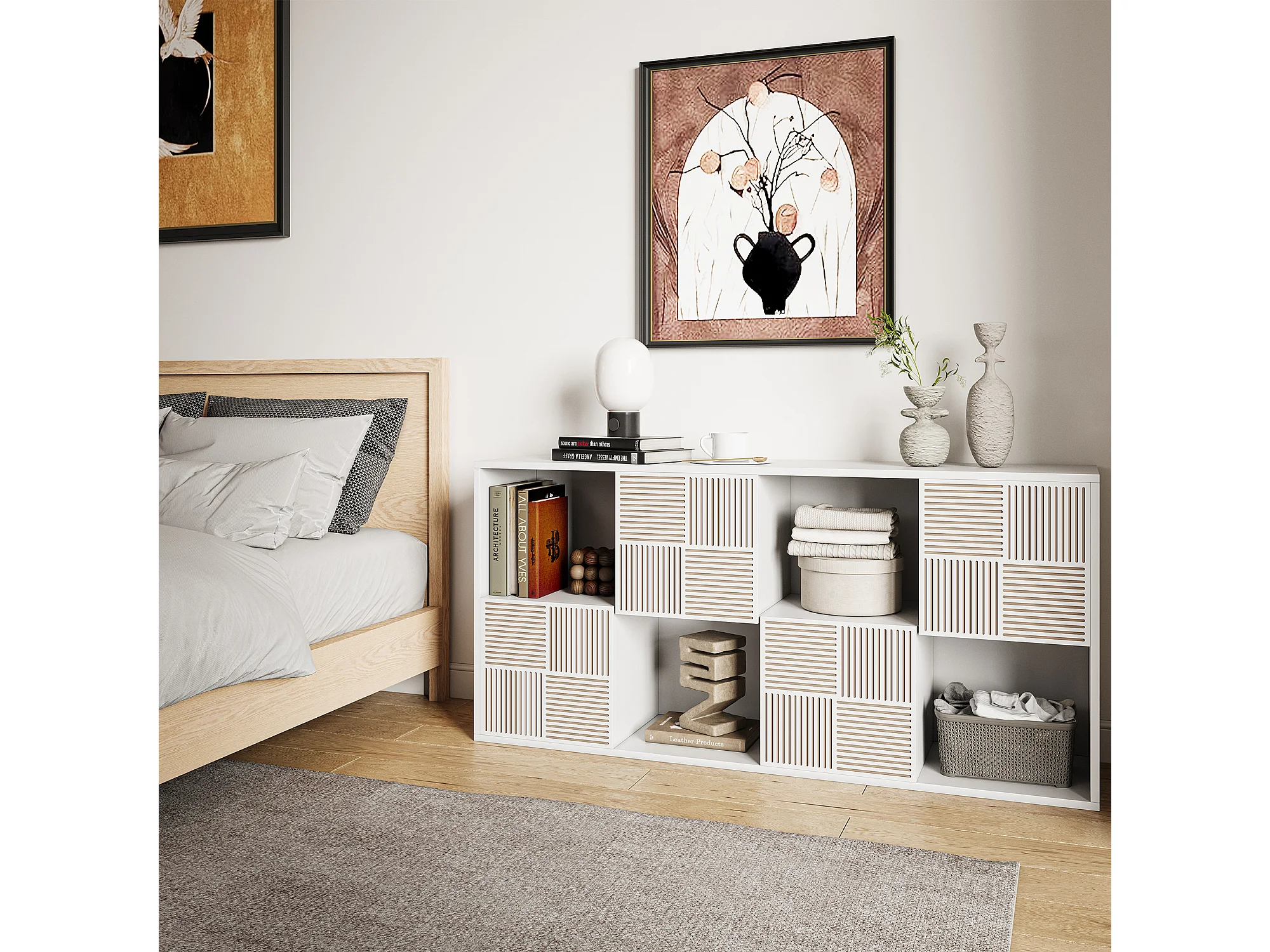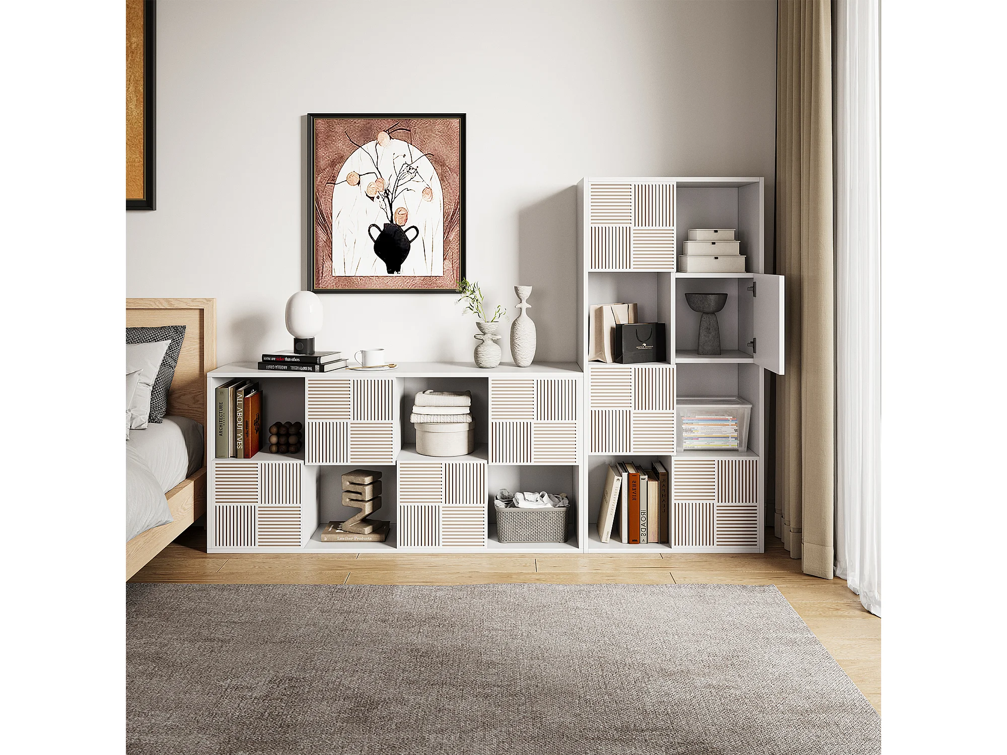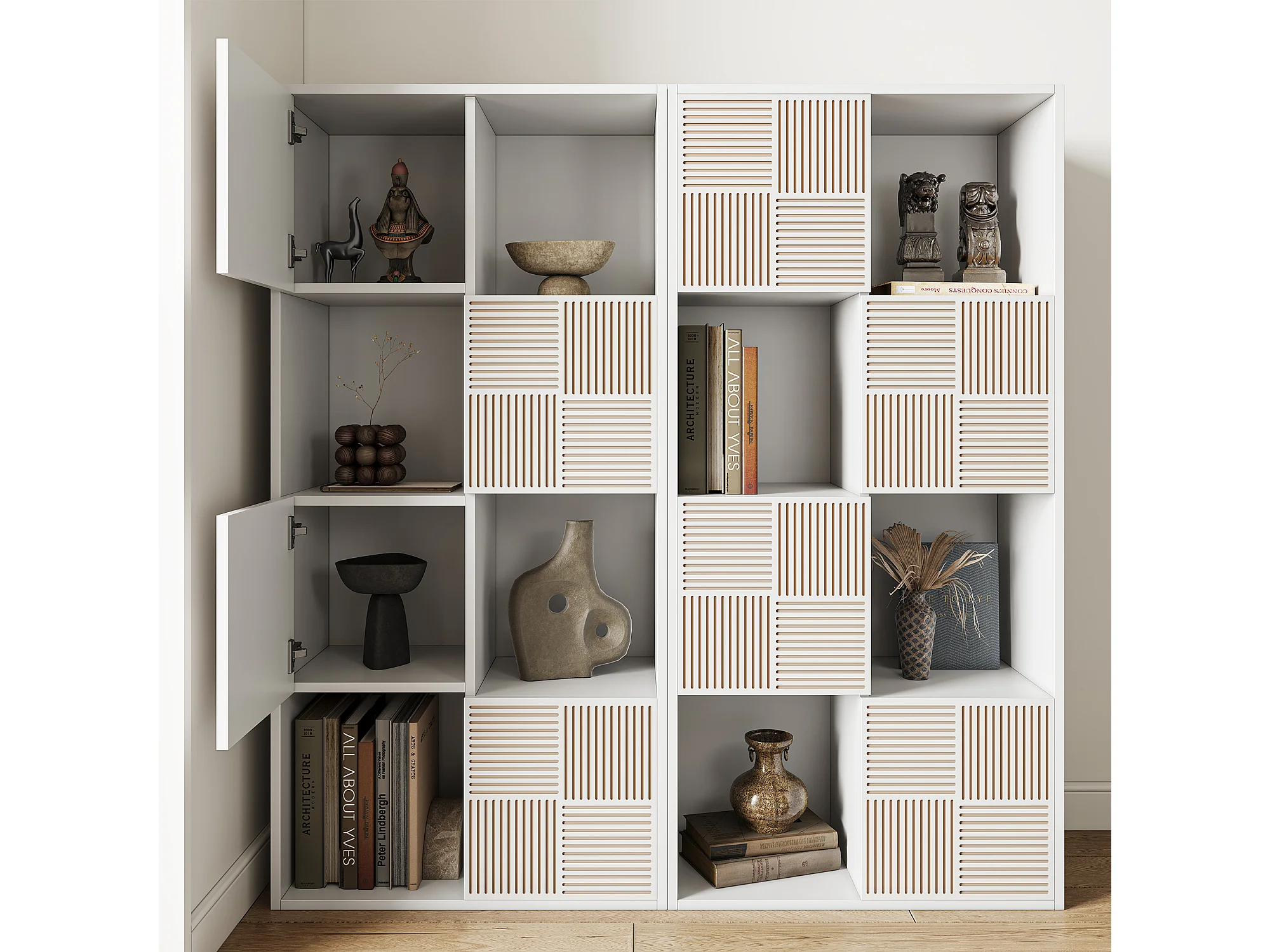 Boekenkast met 8 vakken - Open planken met 4 deuren - Vrijstaand - 125 x 30 x 60 cm - Wit