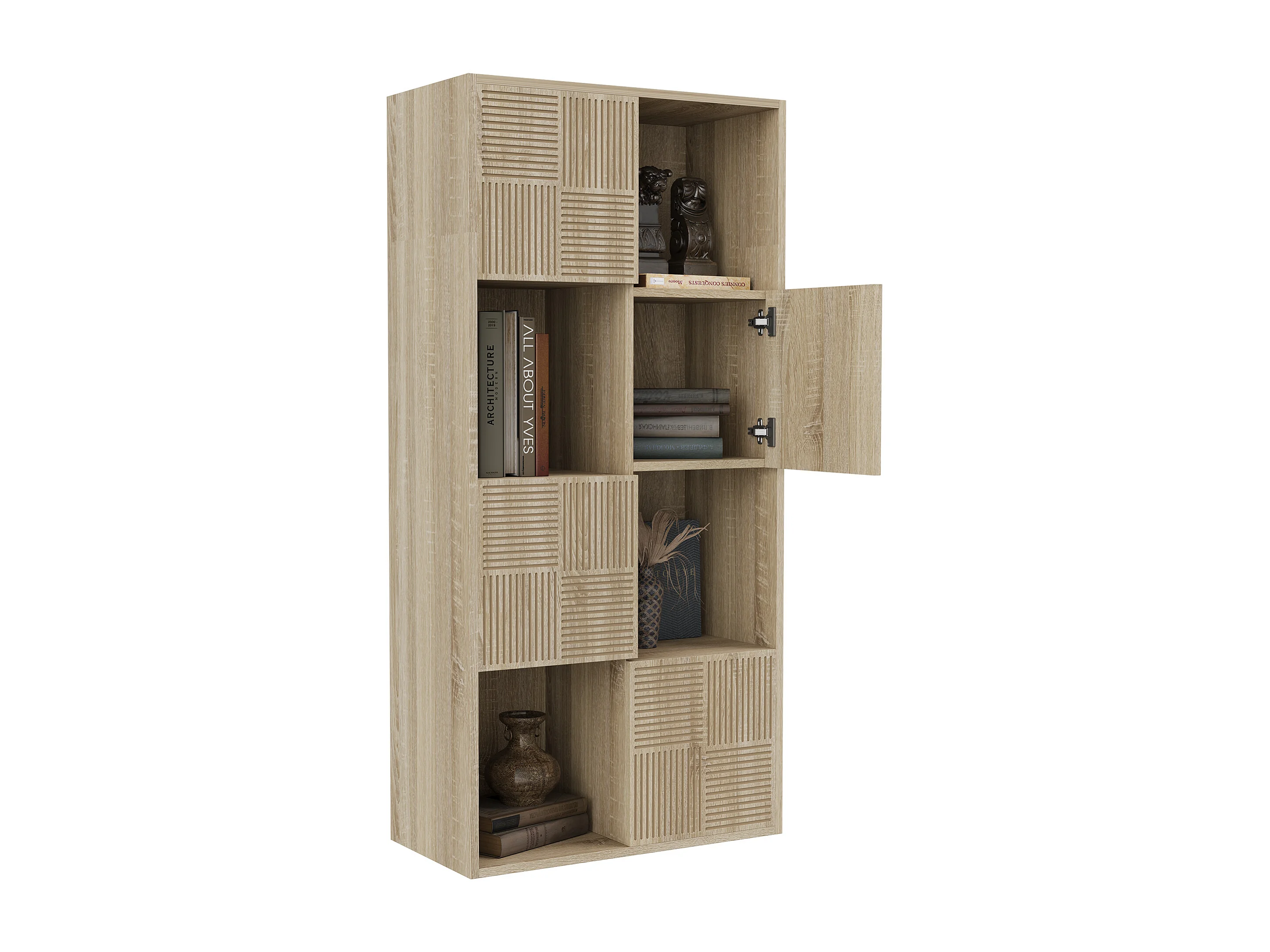 Boekenkast met 8 vakken – Open schappen met 4 deuren – Vrijstaand – 125 x 30 x 60 cm – Houtkleur