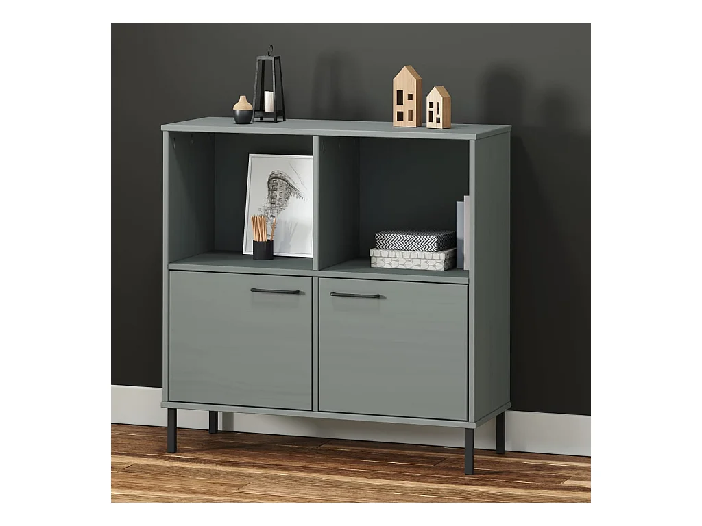 Boekenkast met metalen poten OSLO 90x35x90,5 cm hout grijs