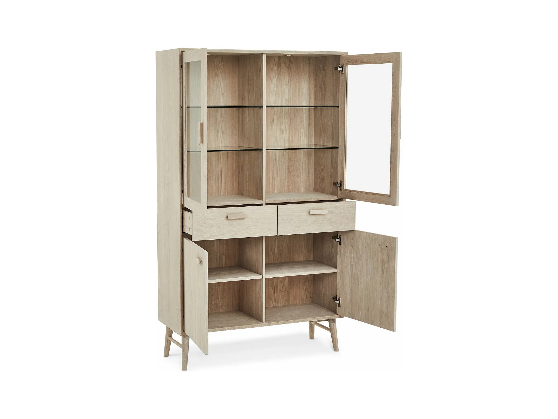 Vitrinekast met led-verlichting Nyborg - 2 deuren, 2 laden - Massief eikenhout & MDF - Witte olie