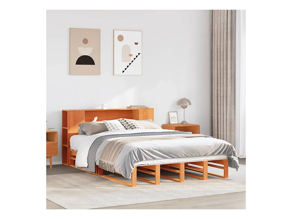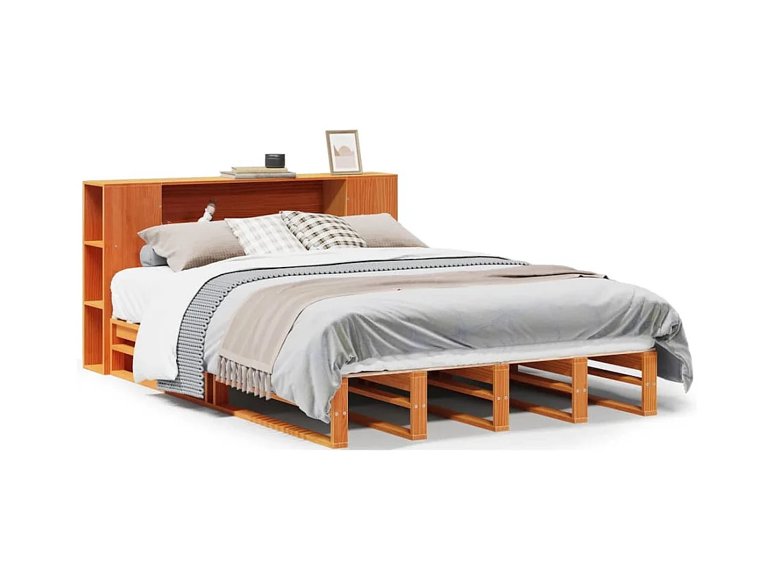 Boekenkastbed zonder matras, bruine was, 140x190cm, massief hout